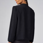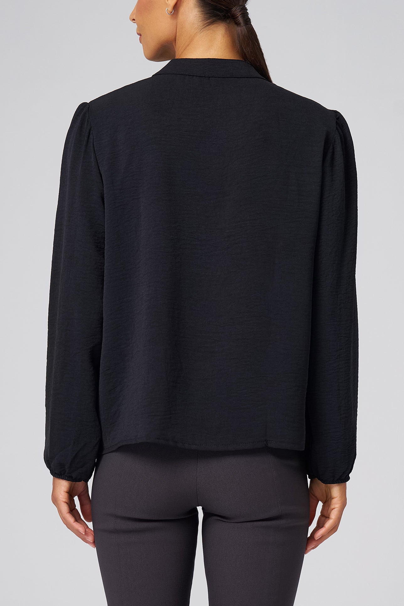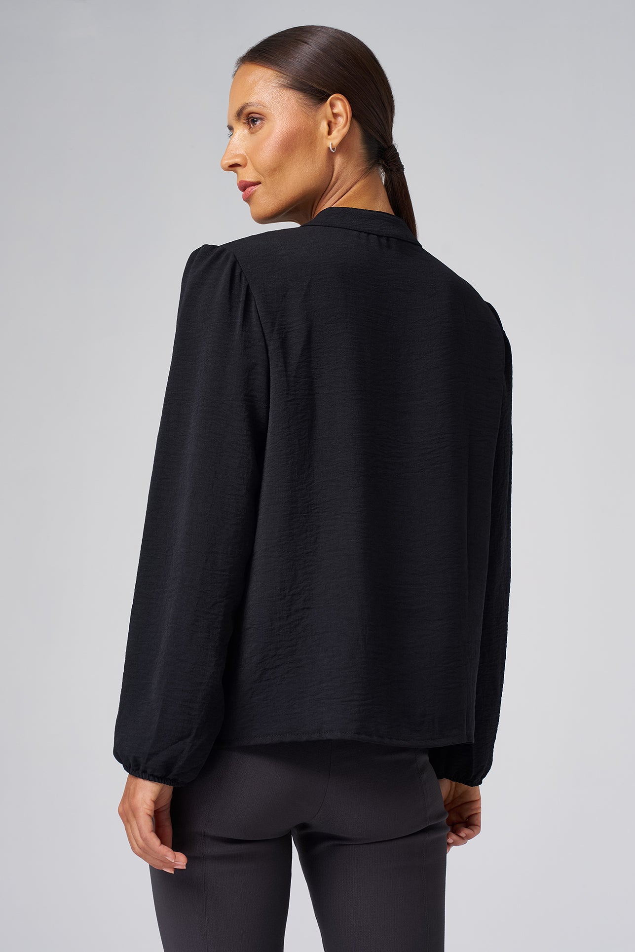 Where modern edge meets everyday ease. The Parker Pintuck Blouse is made from airy, textured crinkle fabric that feels as good as it looks—cool, breathable, and never clingy. Pintuck detailing and a sleek band collar bring clean lines up front, while gathered shoulders and billowy sleeves add a soft, sculptural touch. The relaxed fit drapes beautifully—no fuss, no cling, just instant style.