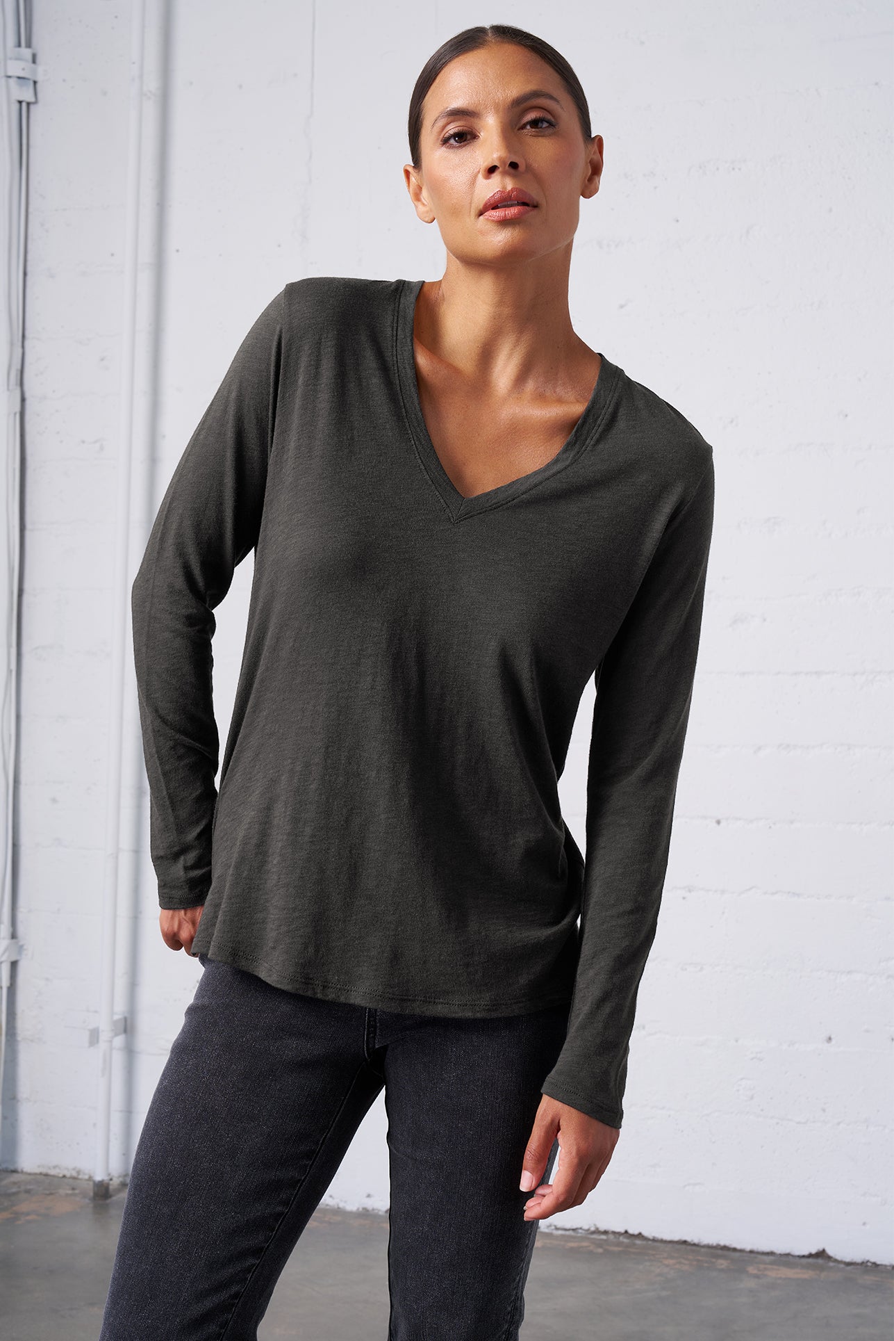 Slub Jersey Long Sleeve Tee in Carbon