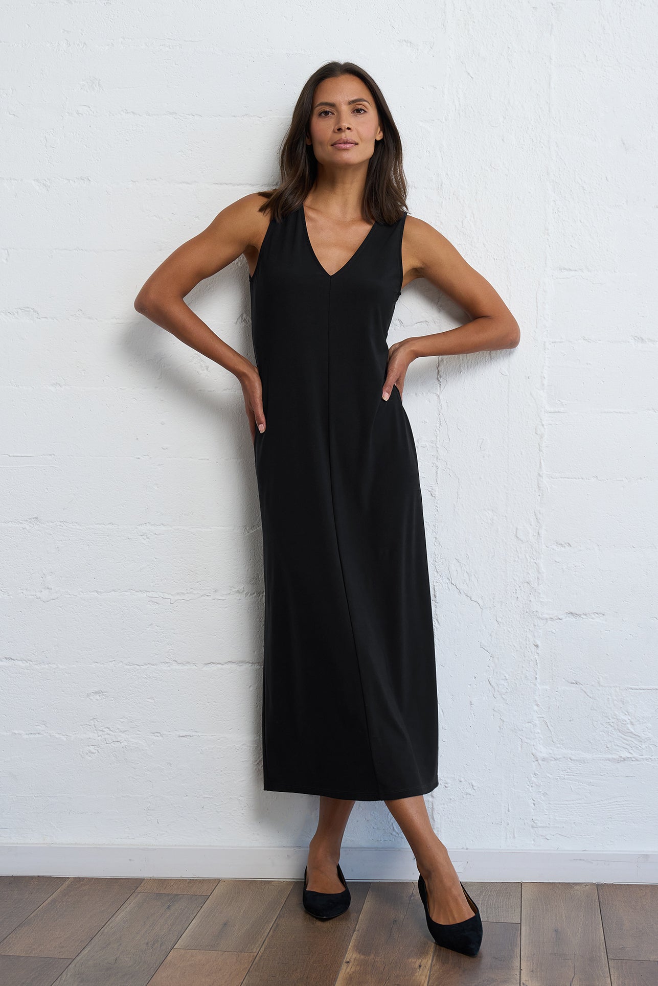 Luxe Stretch V-Neck Dress in Black