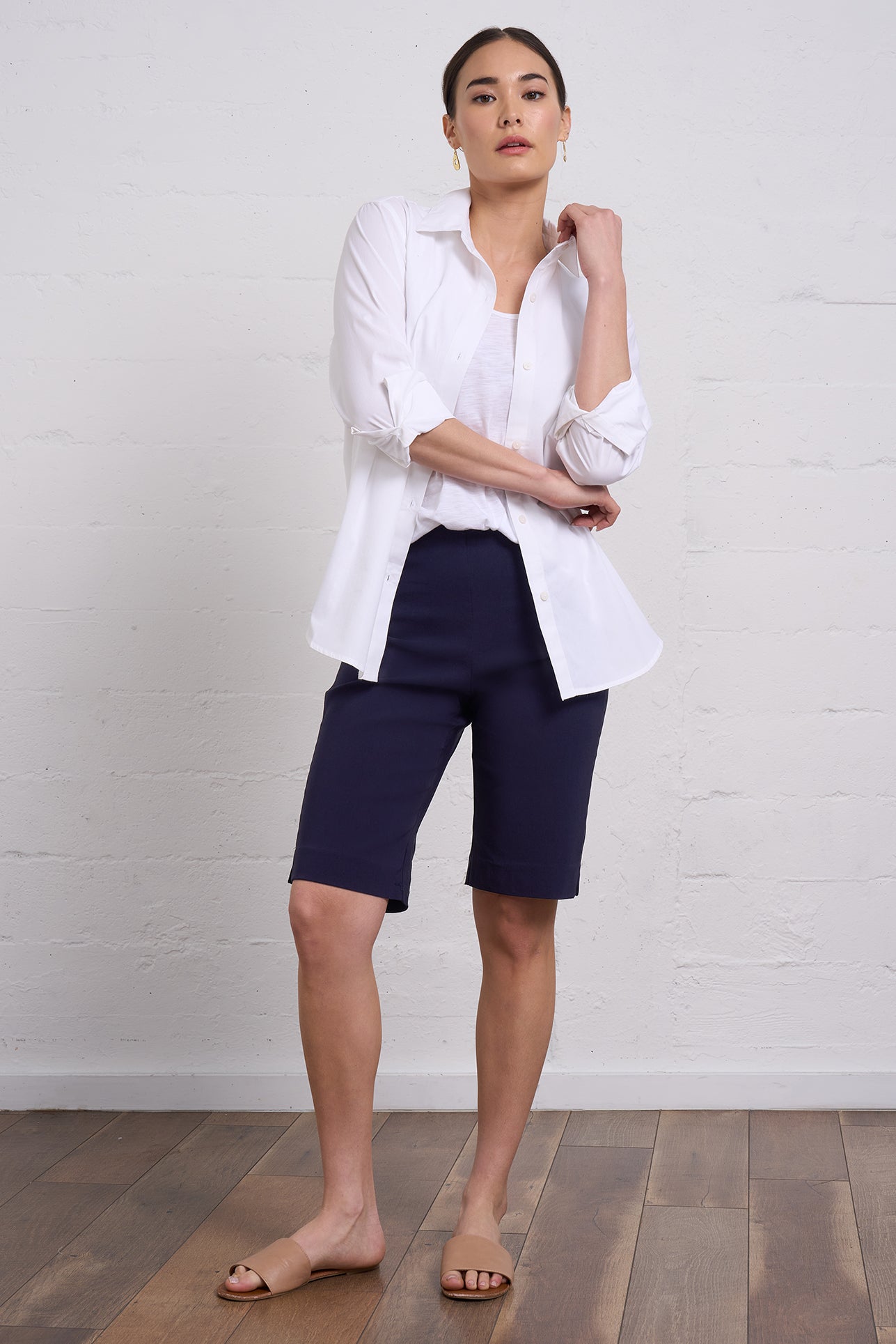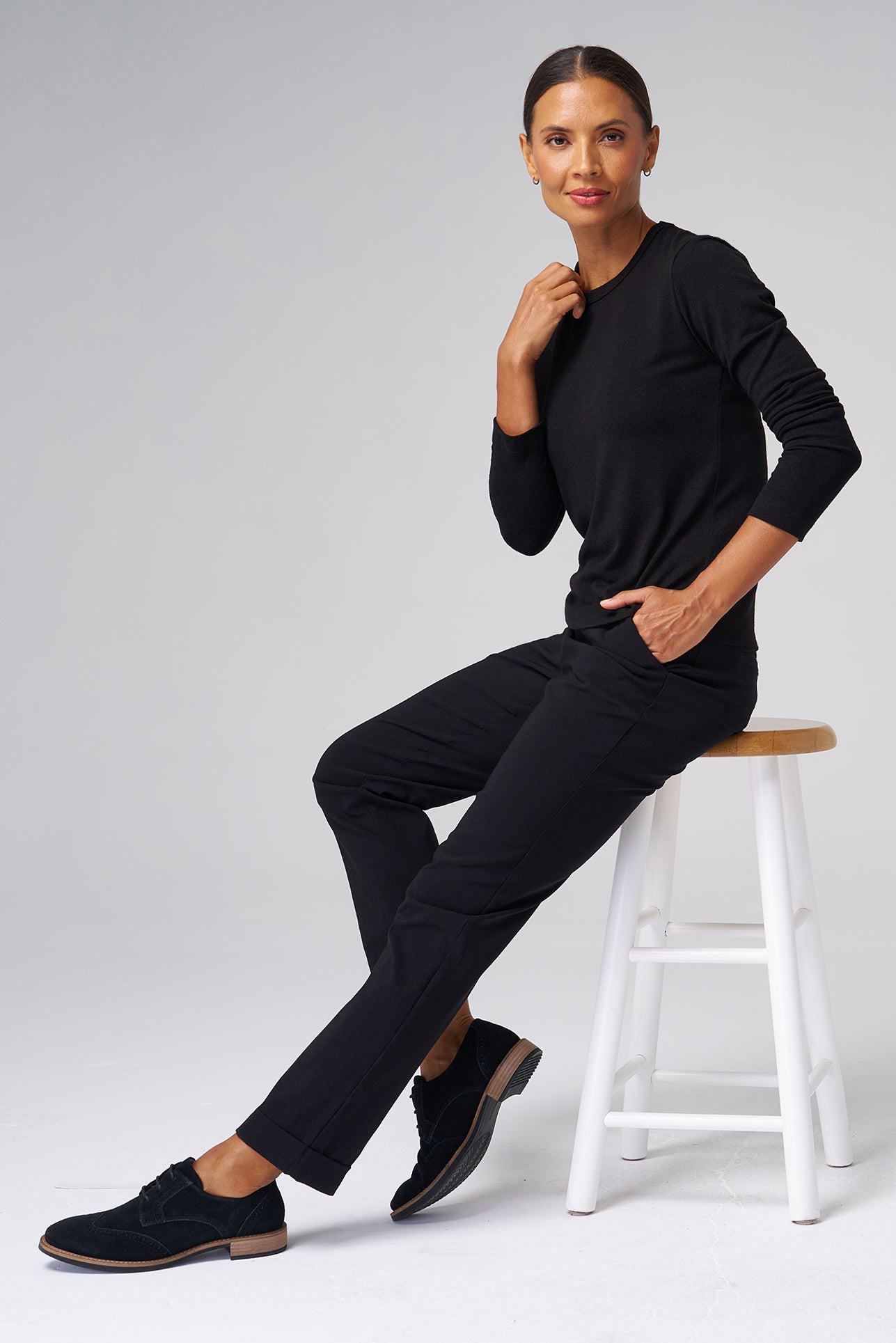 The Magic Pant comes in two signature fabrics: the Original Weave, known for its structure and polish, and the All-Season, a softer stretch designed for year-round comfort.