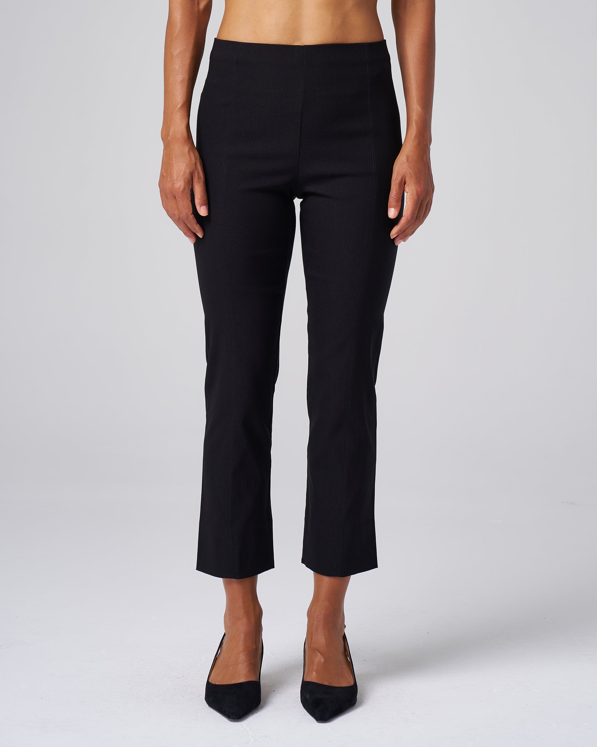 • Hidden elastic pull-on waistband for a smooth, flattering finish