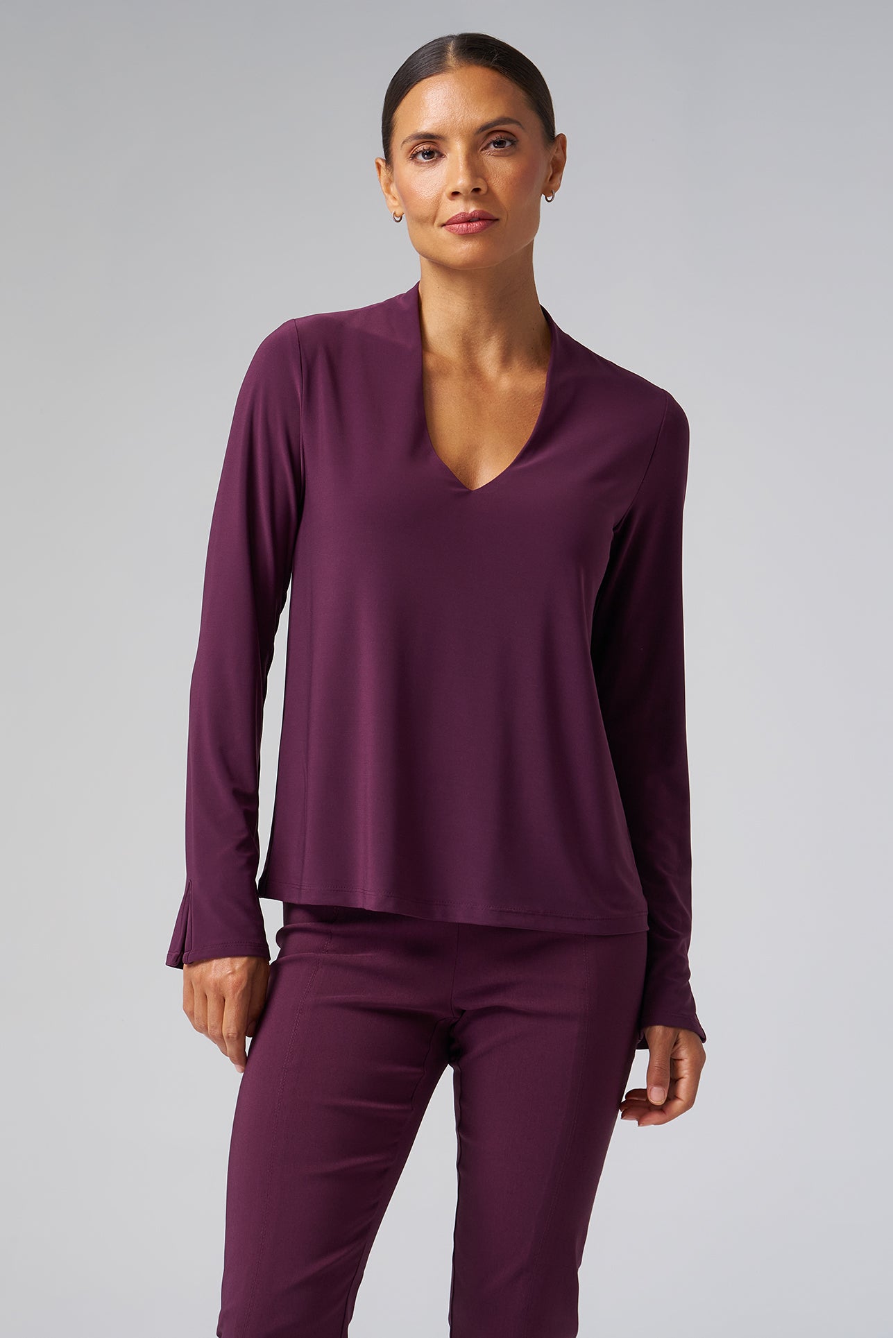 Luxe Stretch Long Sleeve V-Neck in Aubergine
