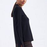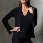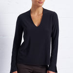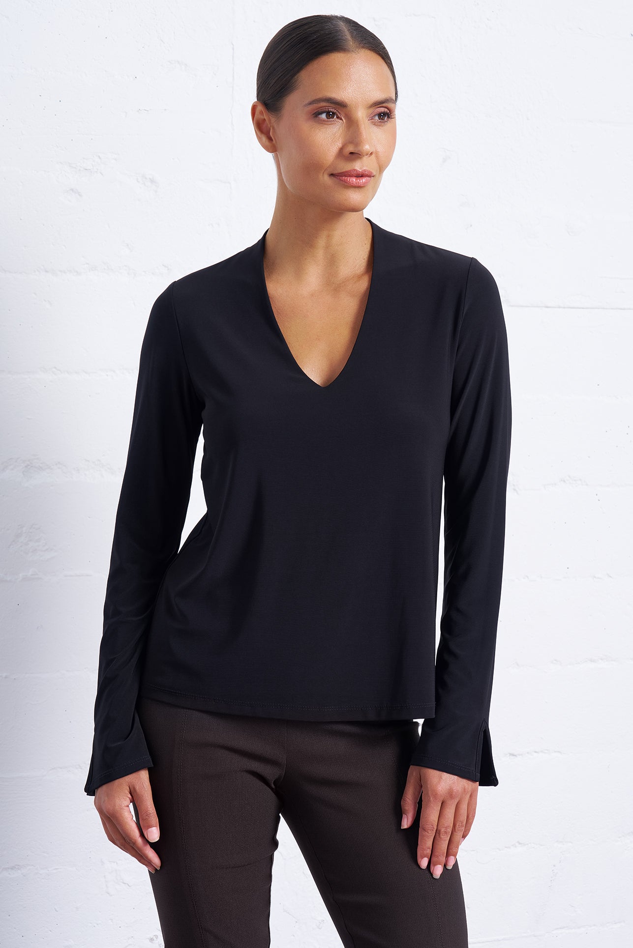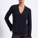 This elegant long-sleeve top is crafted from a premium stretch jersey, offering refined style and all-day comfort. Easy to dress up or down, it’s a go-to for any polished look.
