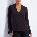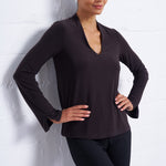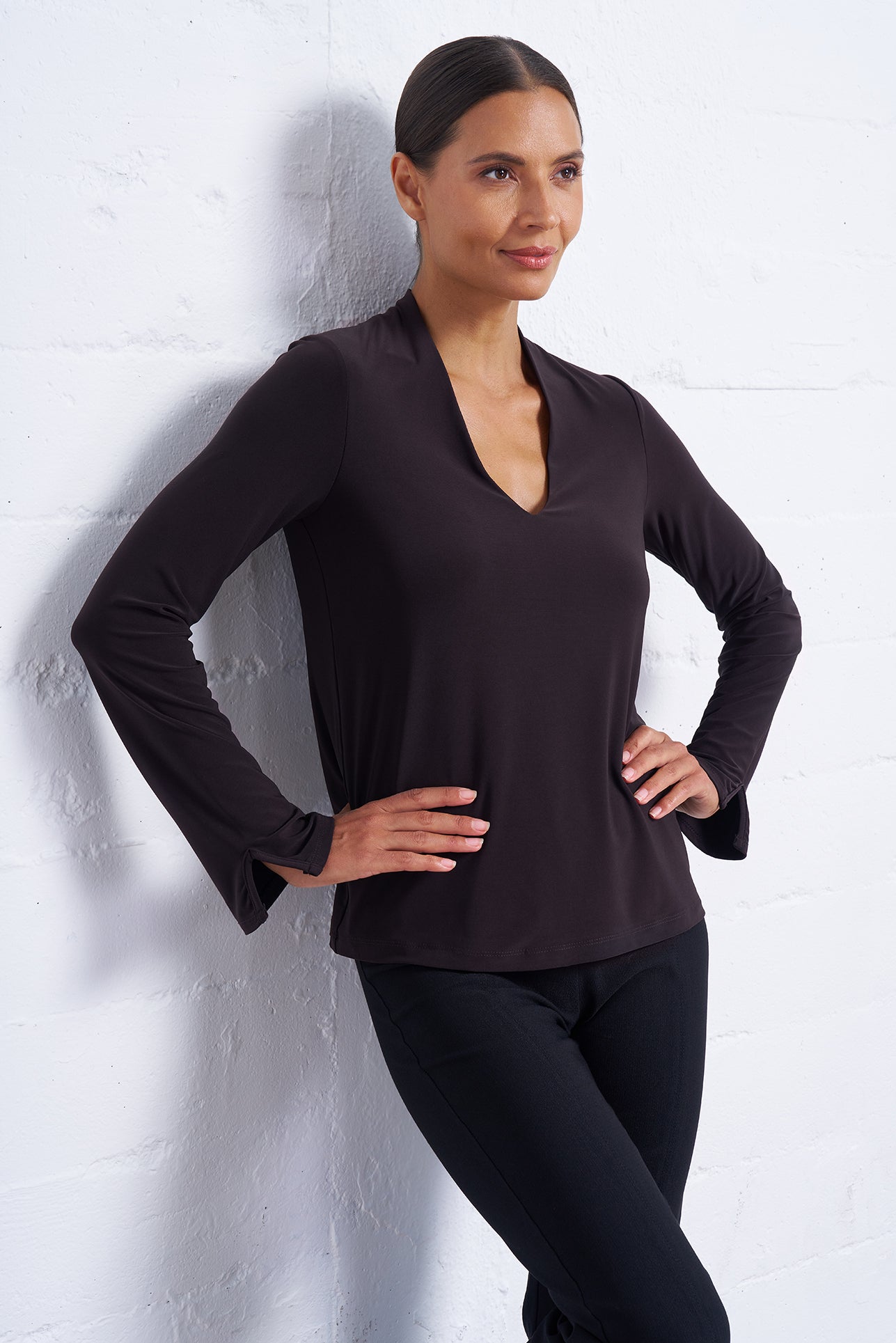 Luxe Stretch Long Sleeve V-Neck in Espresso
