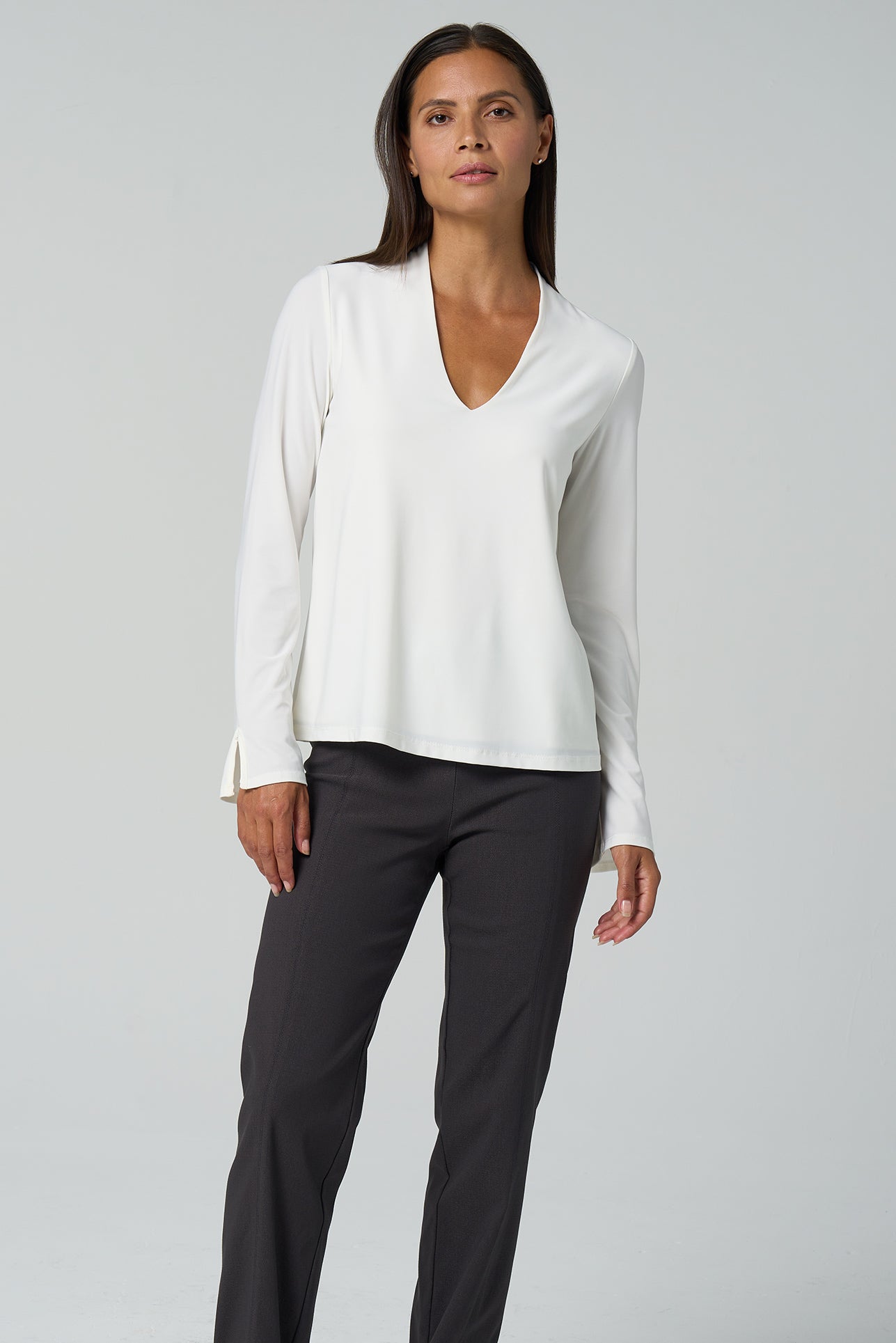 Luxe Stretch Long Sleeve V-Neck in Ivory