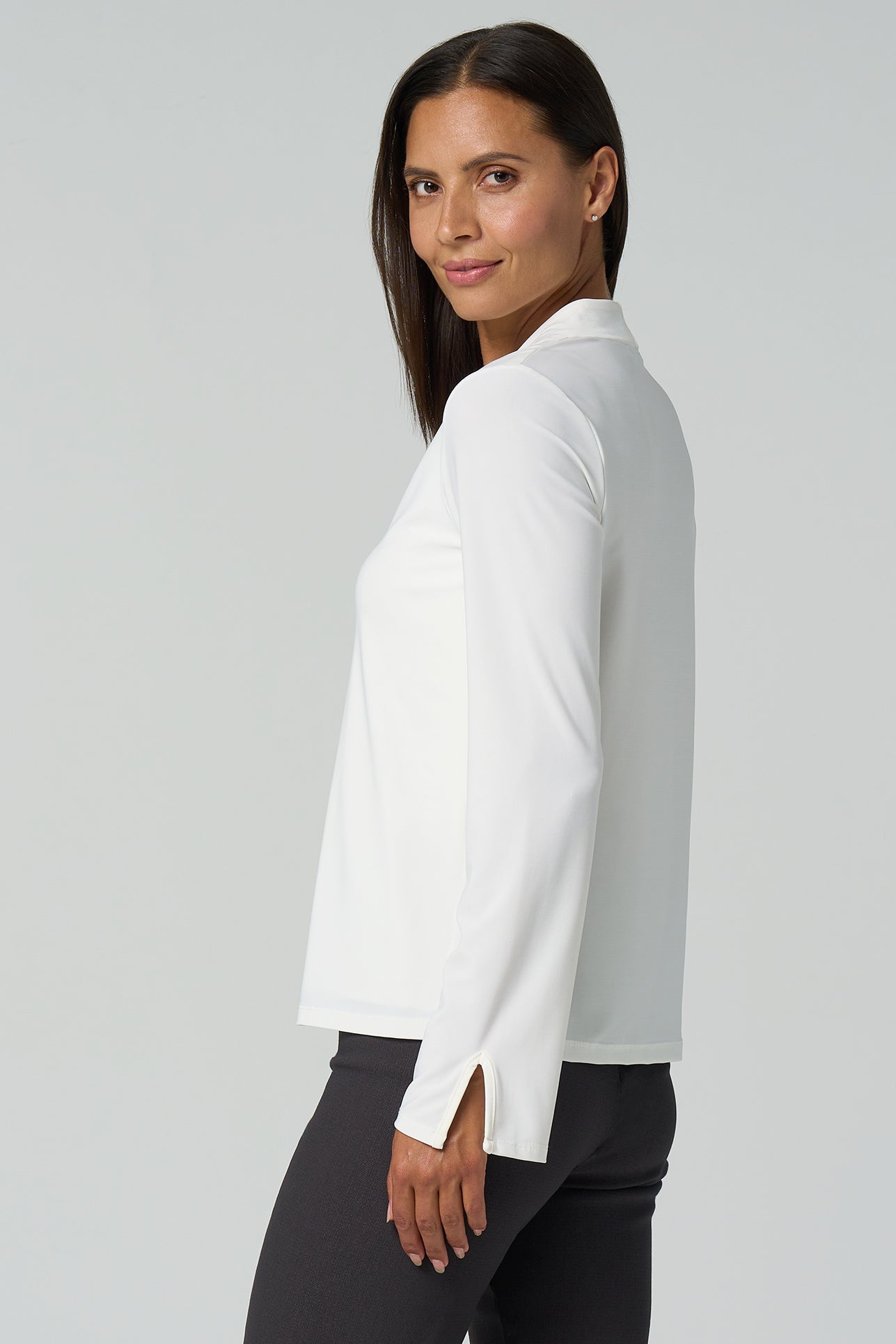 This elegant long-sleeve top is crafted from a premium stretch jersey, offering refined style and all-day comfort. Easy to dress up or down, it’s a go-to for any polished look.