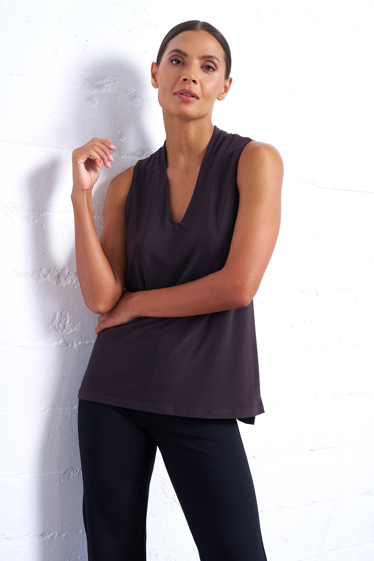 Luxe Stretch Sleeveless V-Neck in Espresso