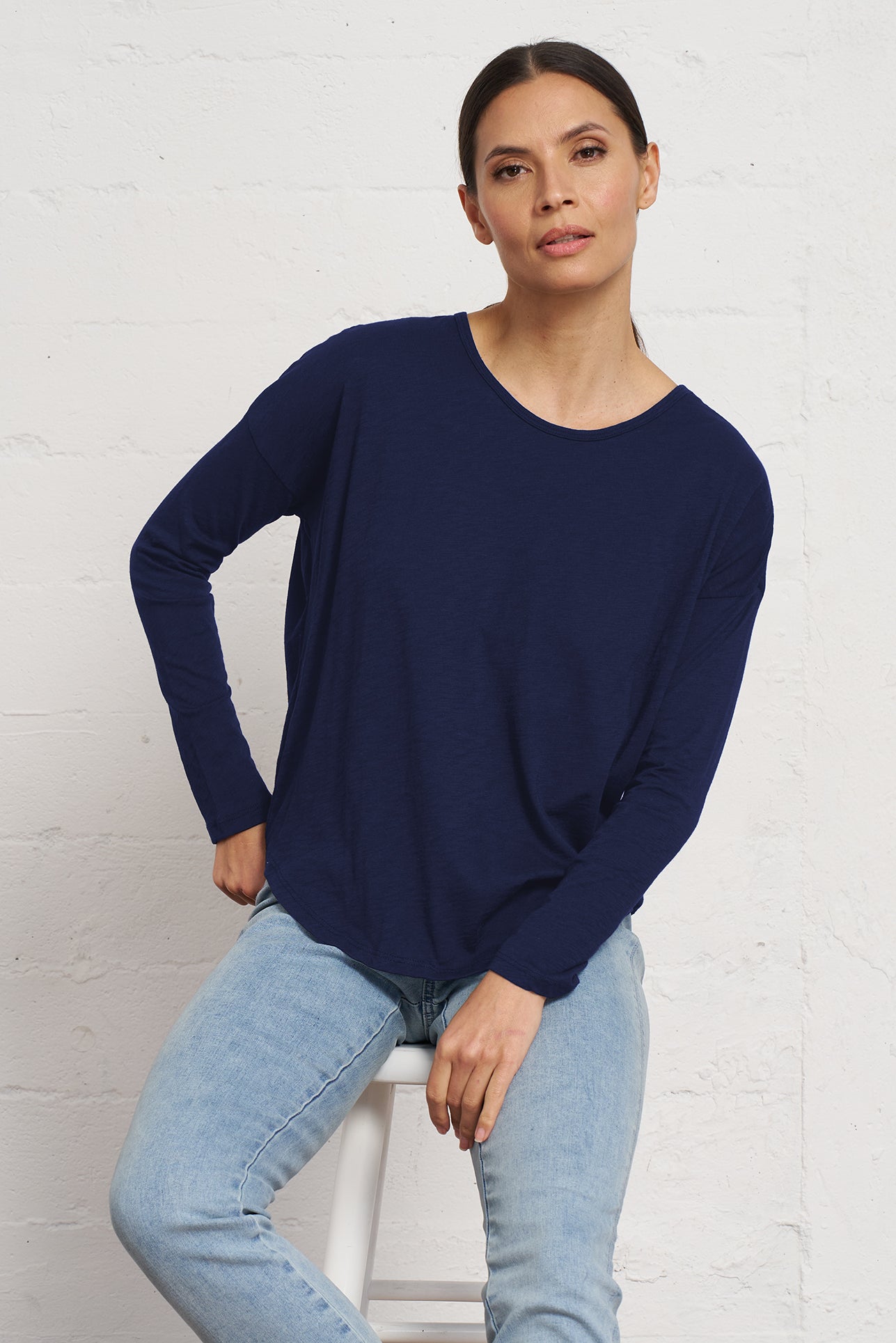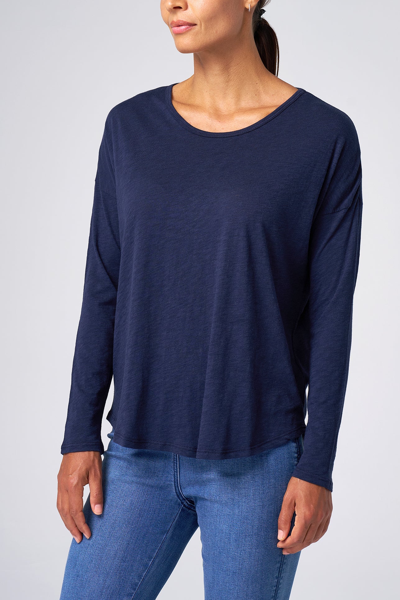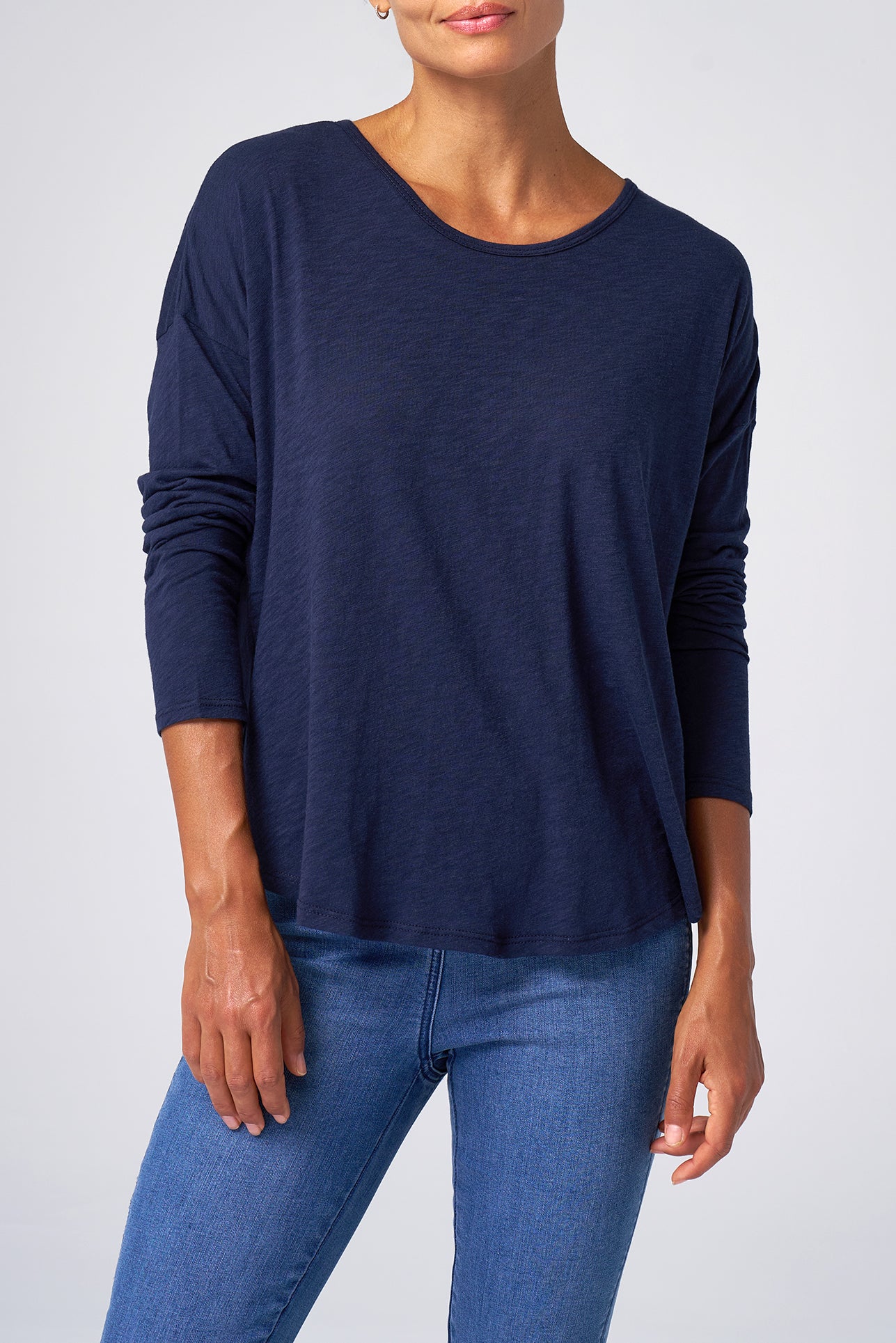 This ultra-soft slub jersey tee blends relaxed comfort with a flattering silhouette, making it an easy go-to for any day.
