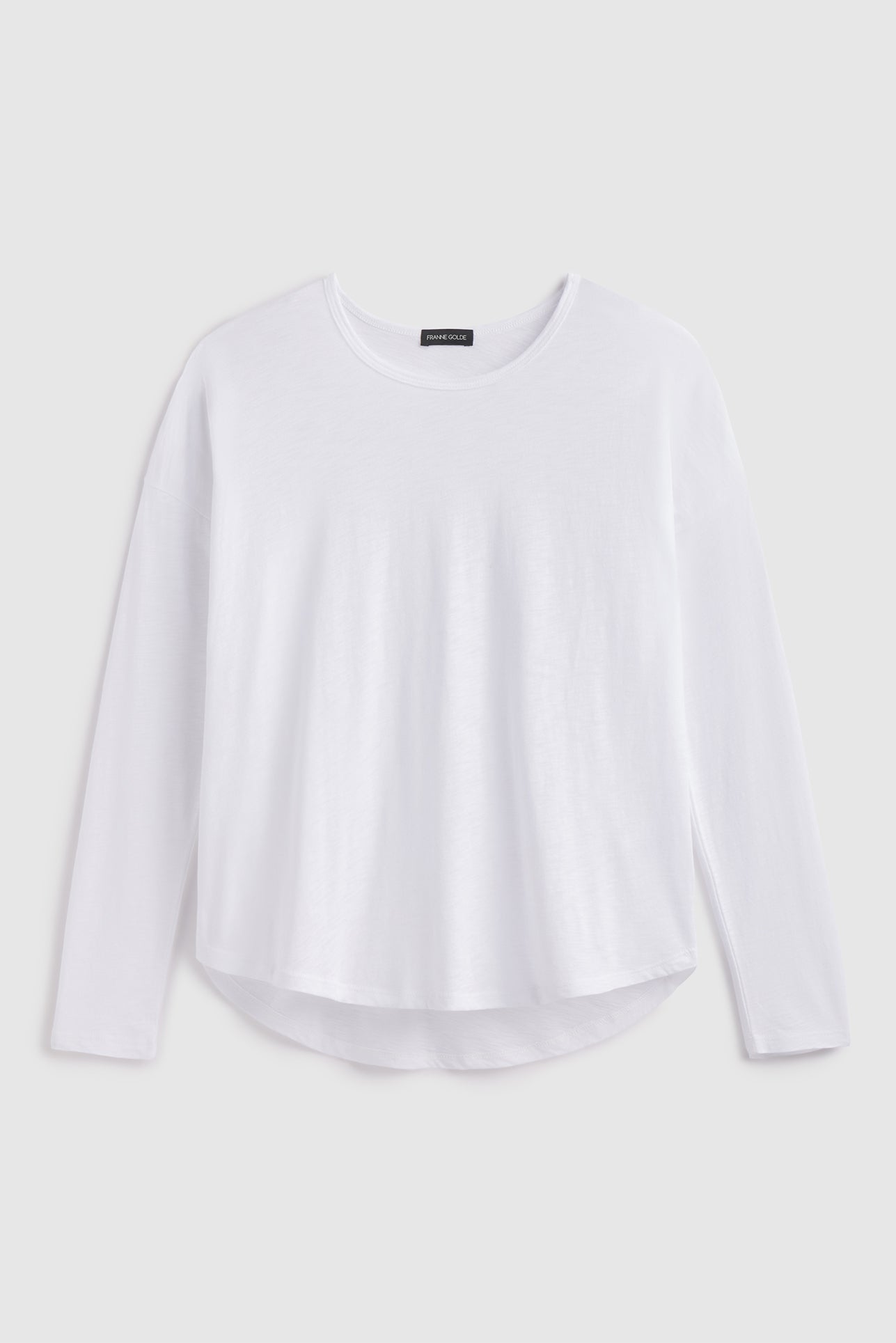 Patrice S.  (Pasadena, MD)    Great fit, excellent fabric. I most especially love the wide crew collar, not quite a scoop neck, not as wide as a boat neck, and not constricted like a regular tee.