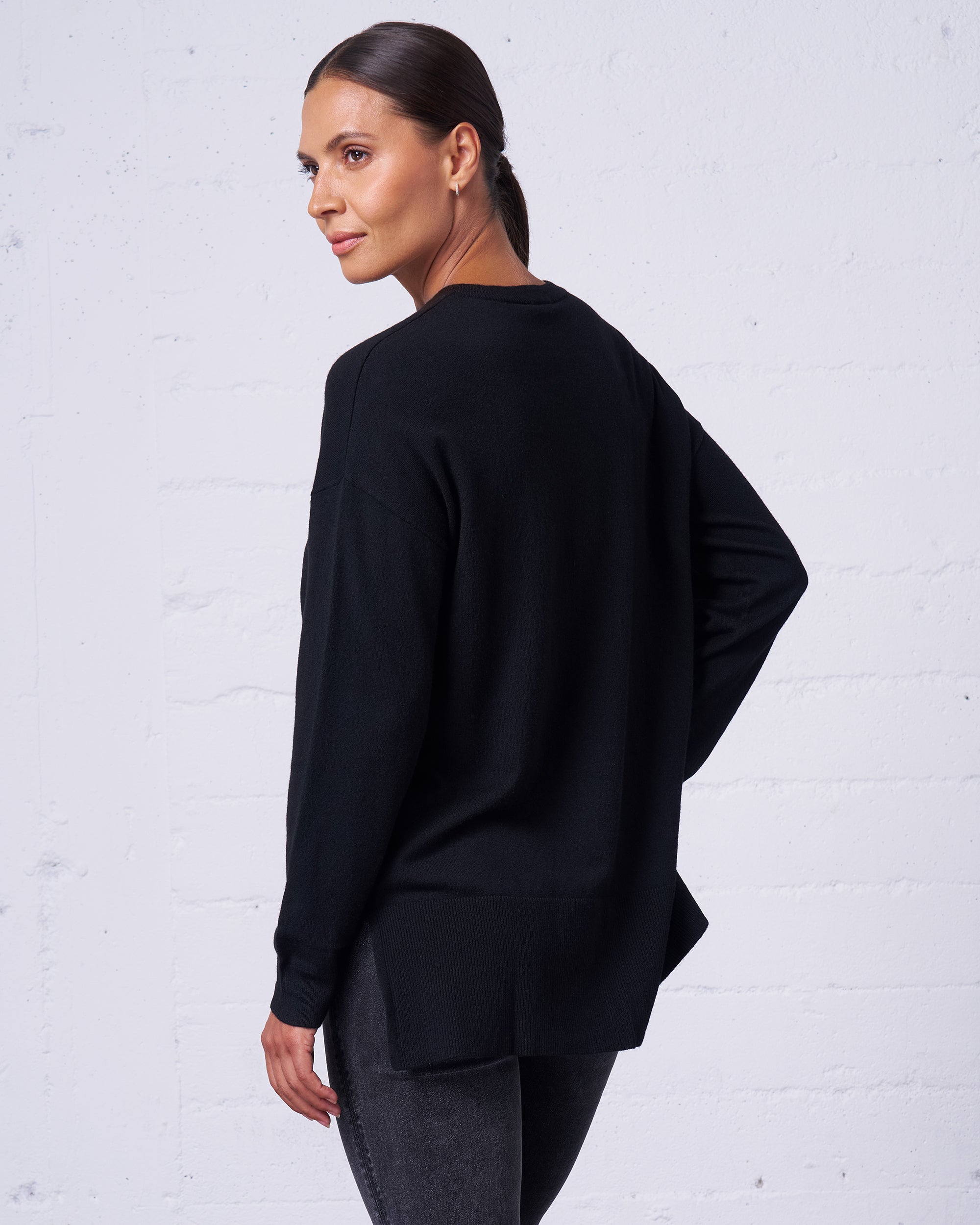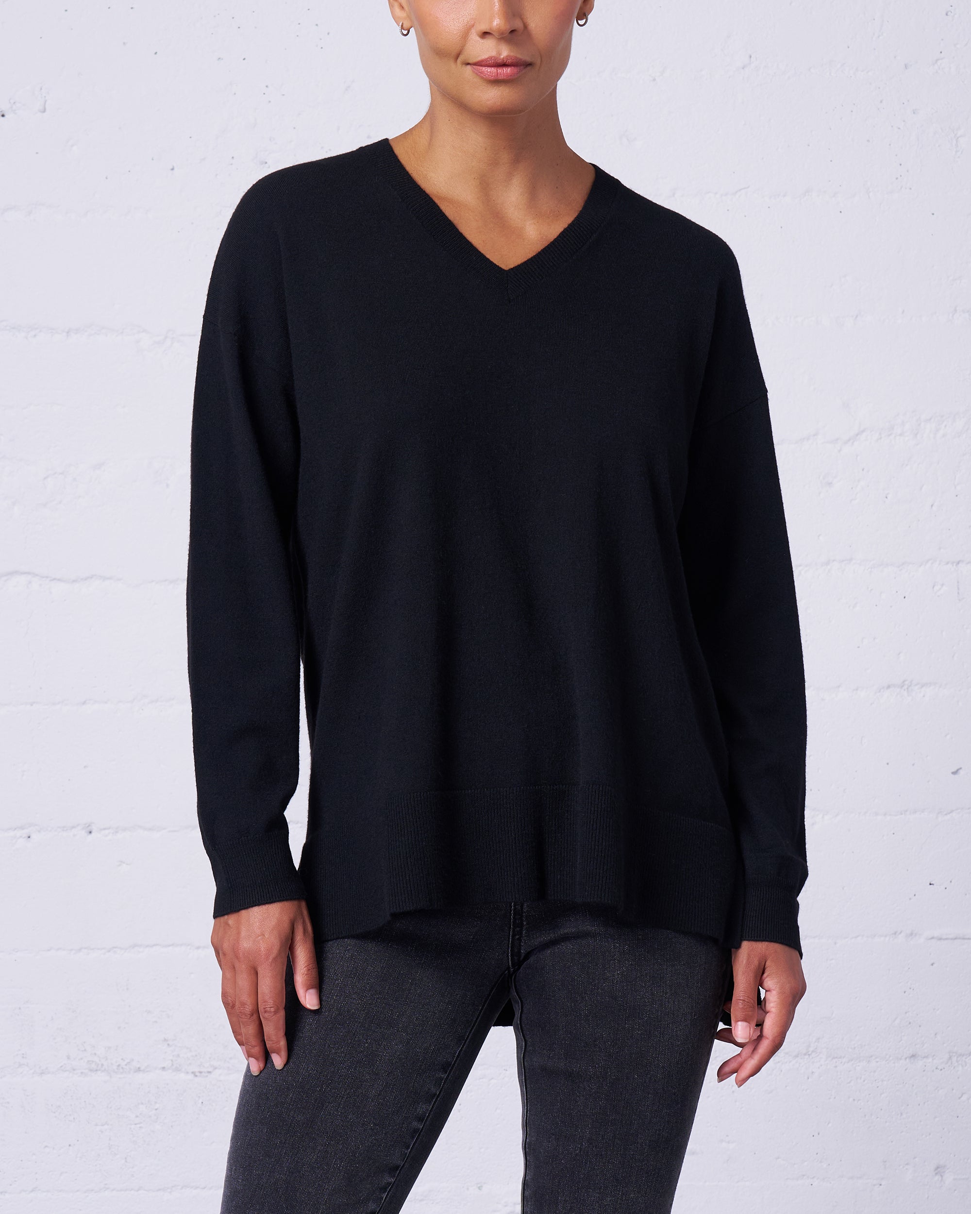 Relaxed V-Neck Sweater in Black