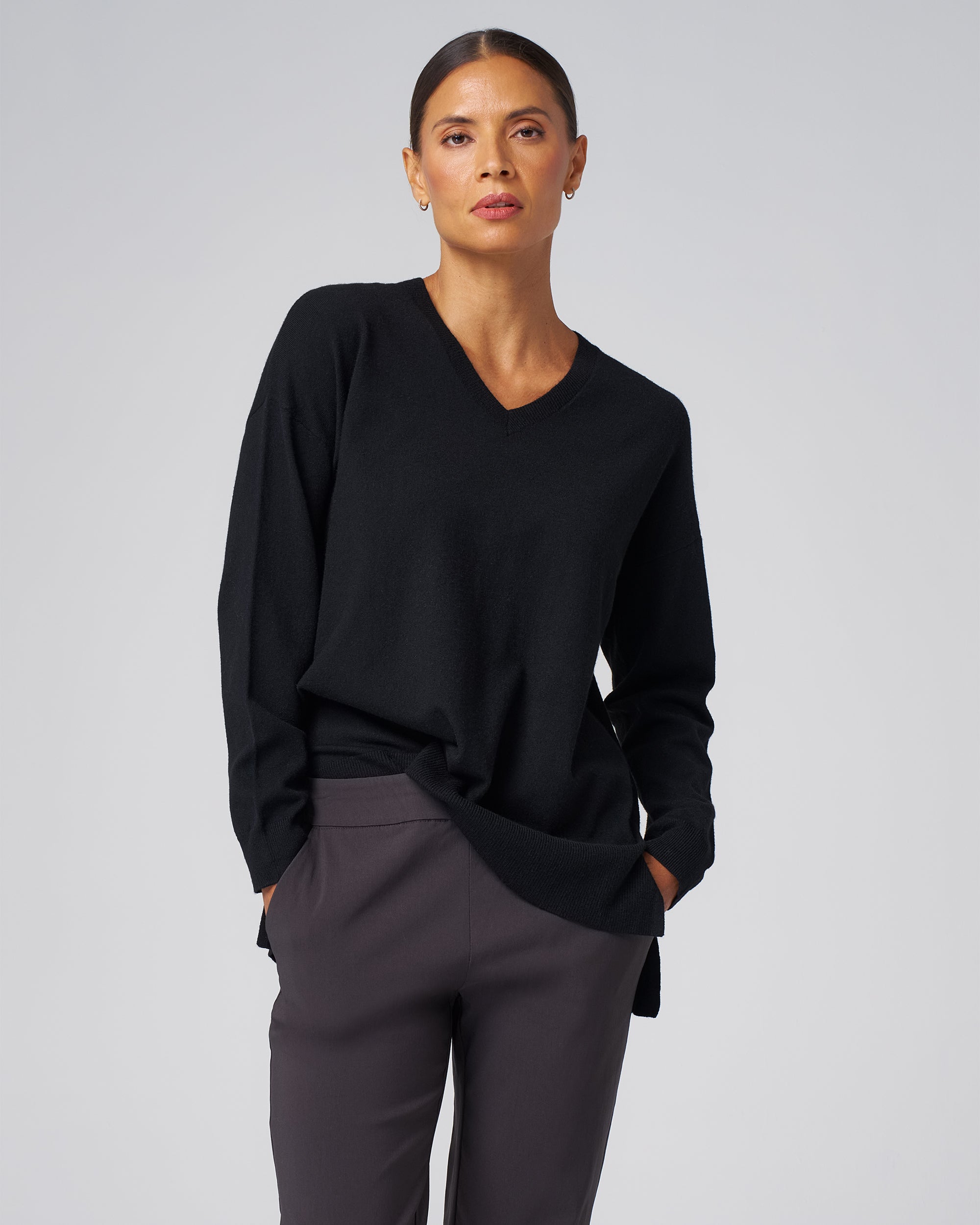 An essential you’ll reach for again and again, this relaxed V-neck pullover sweater blends cozy softness with thoughtful design details.