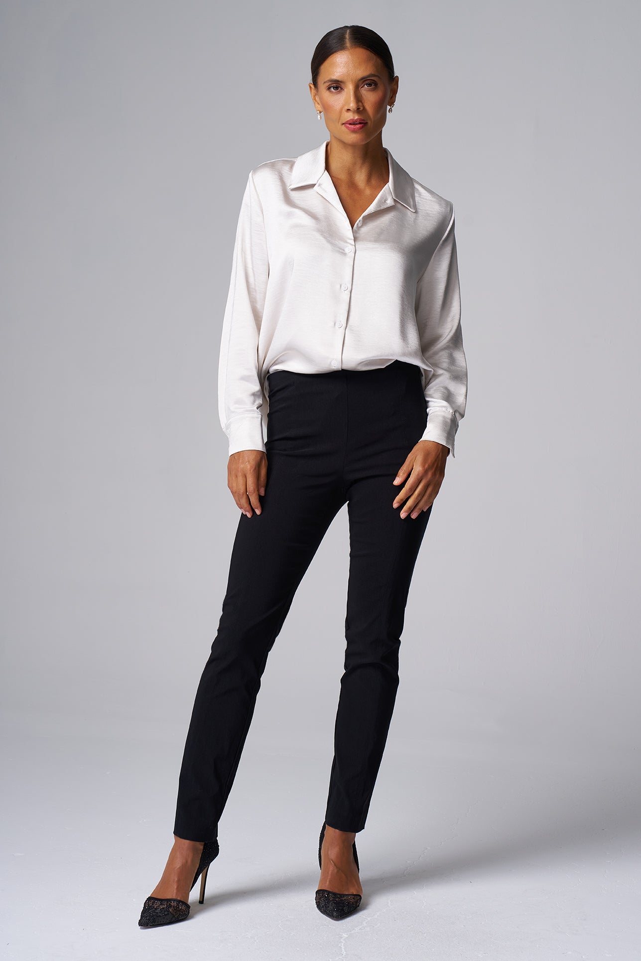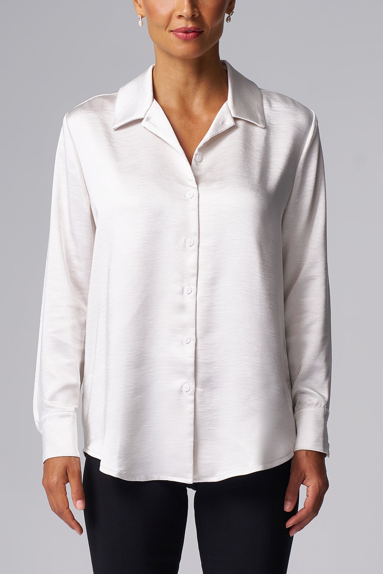 Our Textured Satin Shirt brings a rich, luxurious feel to a classic button-down — structured yet effortlessly soft, it's made to elevate your wardrobe with understated shine.