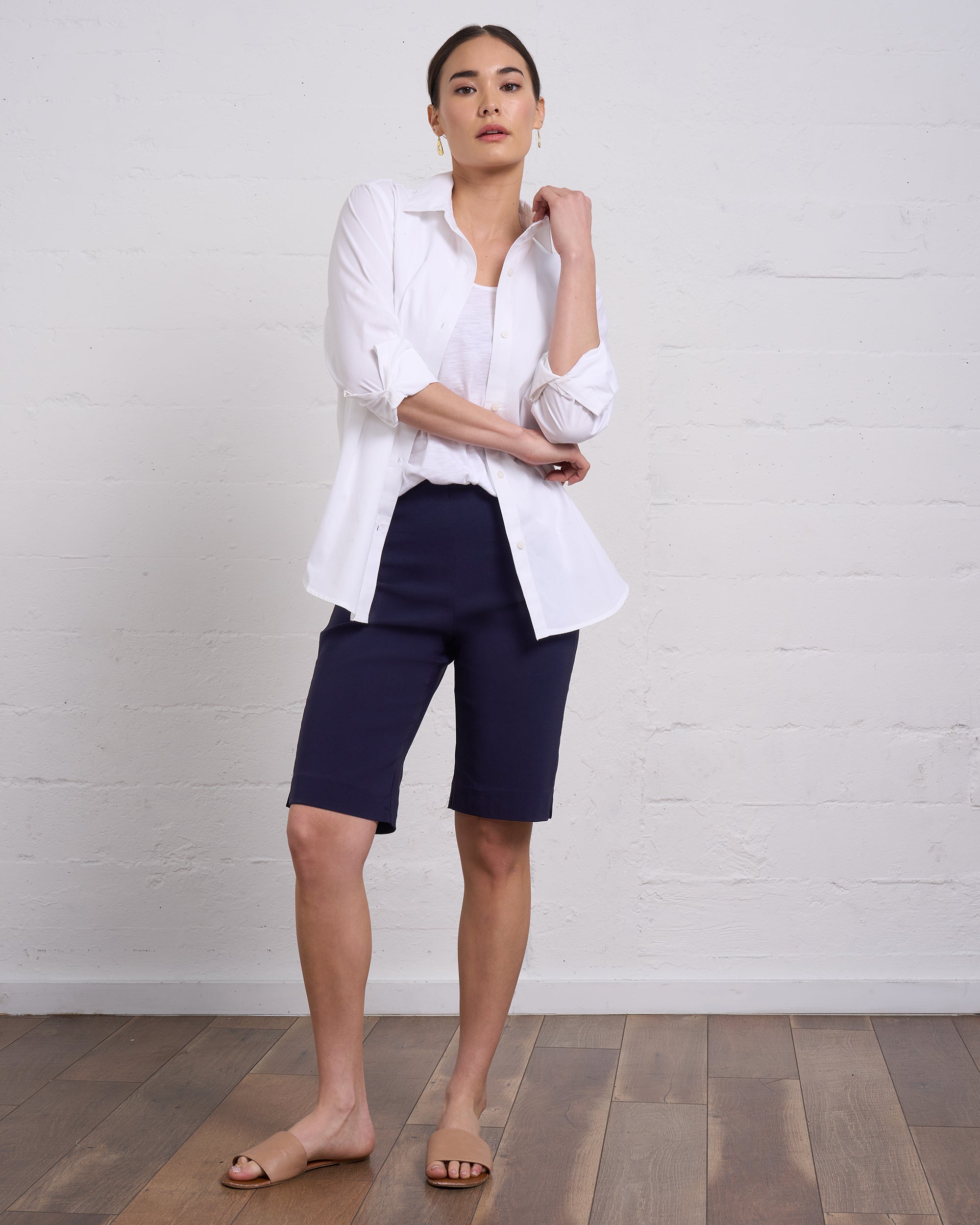 Sleek and slimming, this polished Bermuda short offers smooth support and subtle structure with just the right stretch for everyday ease.