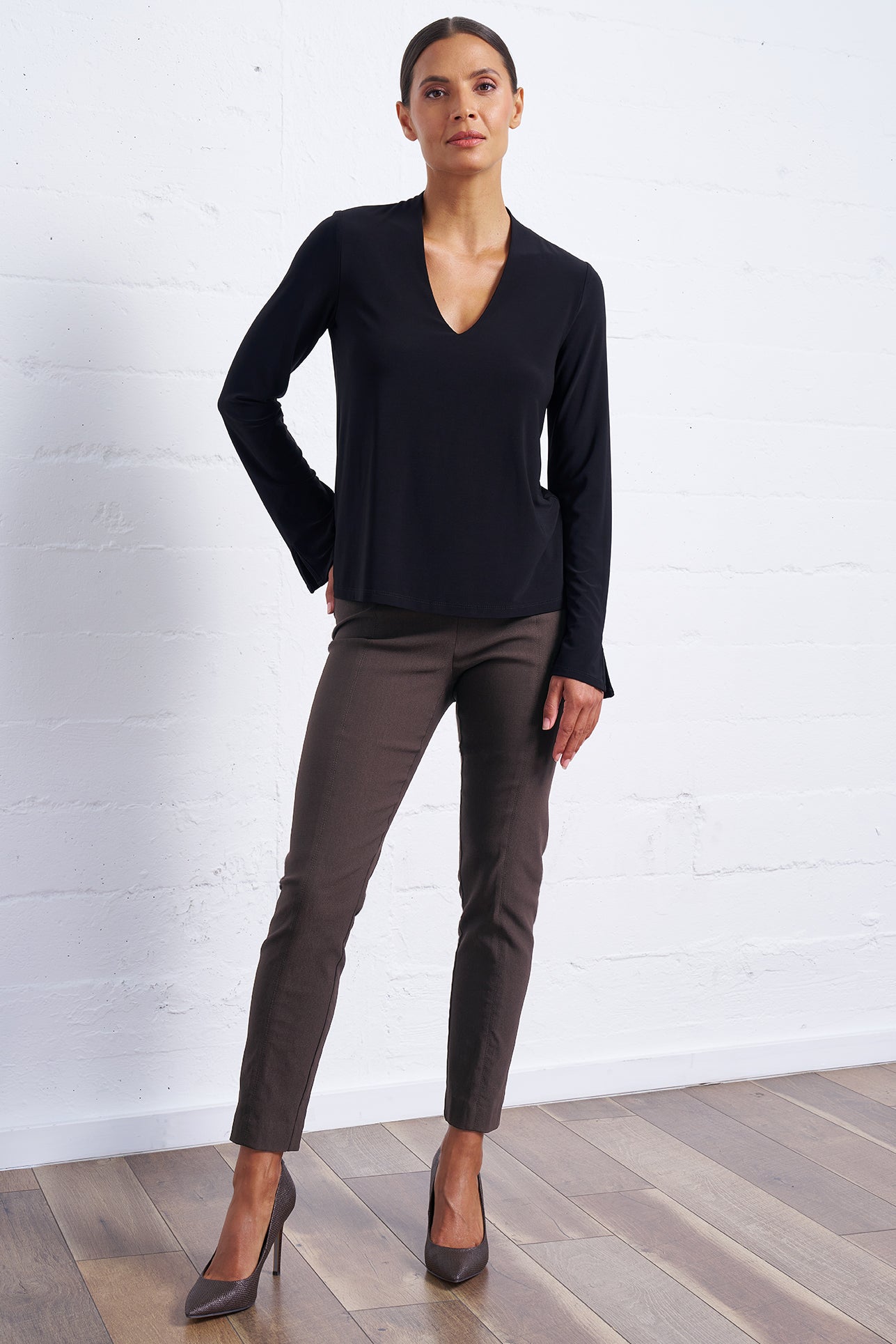 This slim fit ankle pant combines chic timeless style, travel-ready comfort, and a sleek, tailored finish. Ideal for both workdays and weekends, it delivers a polished look without sacrificing ease.