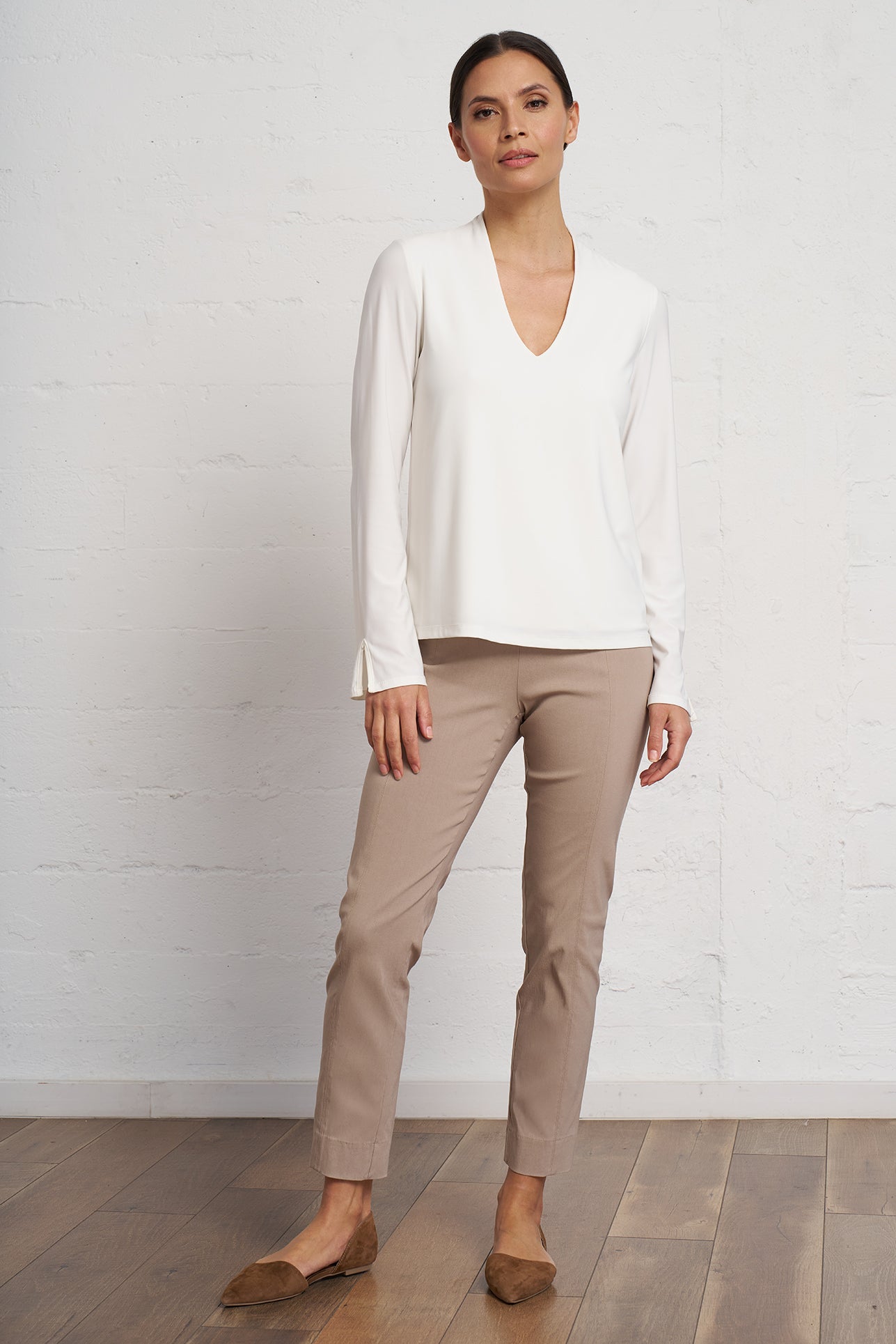 This slim fit ankle pant combines chic timeless style, travel-ready comfort, and a sleek, tailored finish. Ideal for both workdays and weekends, it delivers a polished look without sacrificing ease.