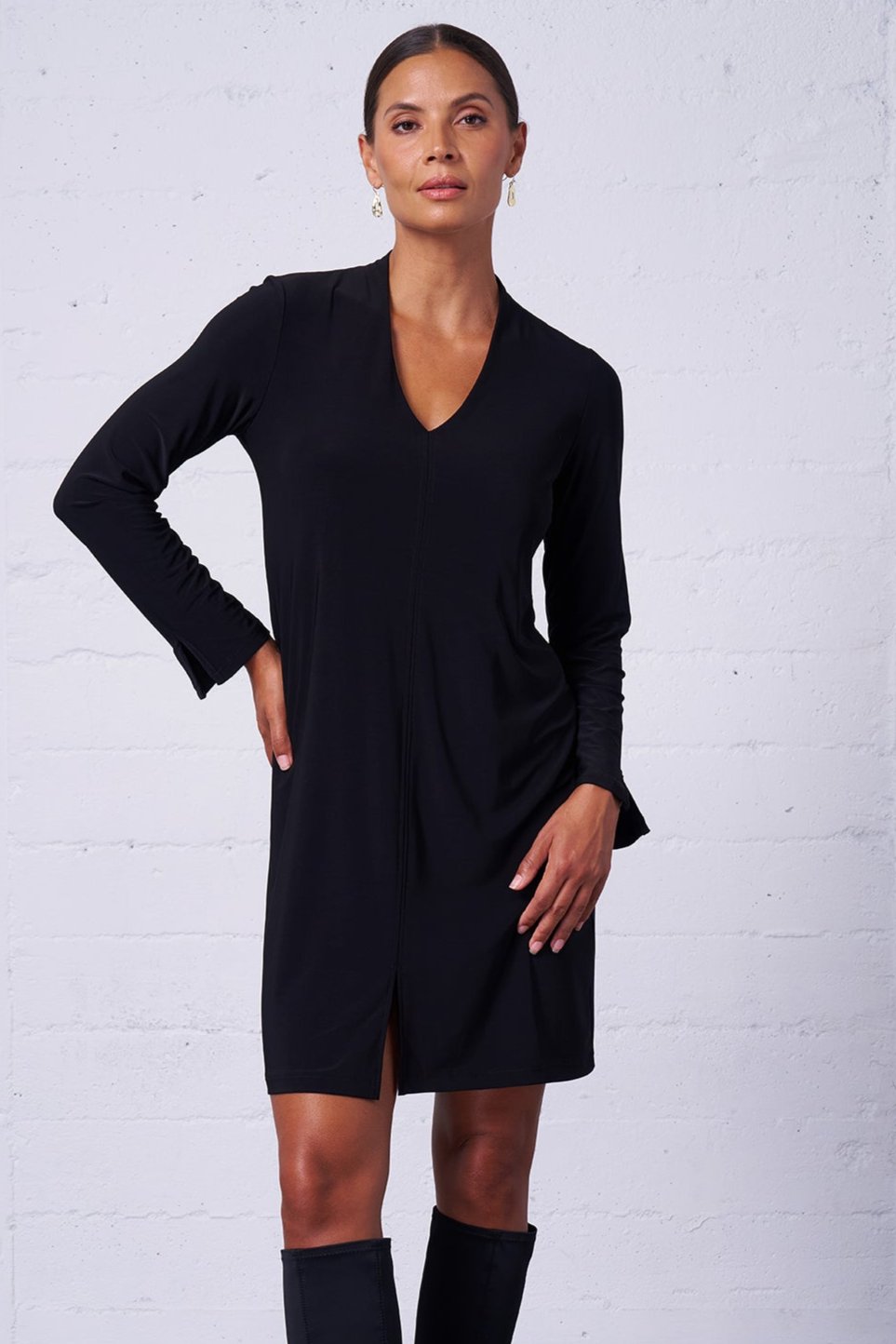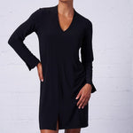 Sleek, stretchy, and endlessly wearable—the Luxe Stretch Long Sleeve Dress in wrinkle-resistant matte jersey moves effortlessly from workday to evening out.