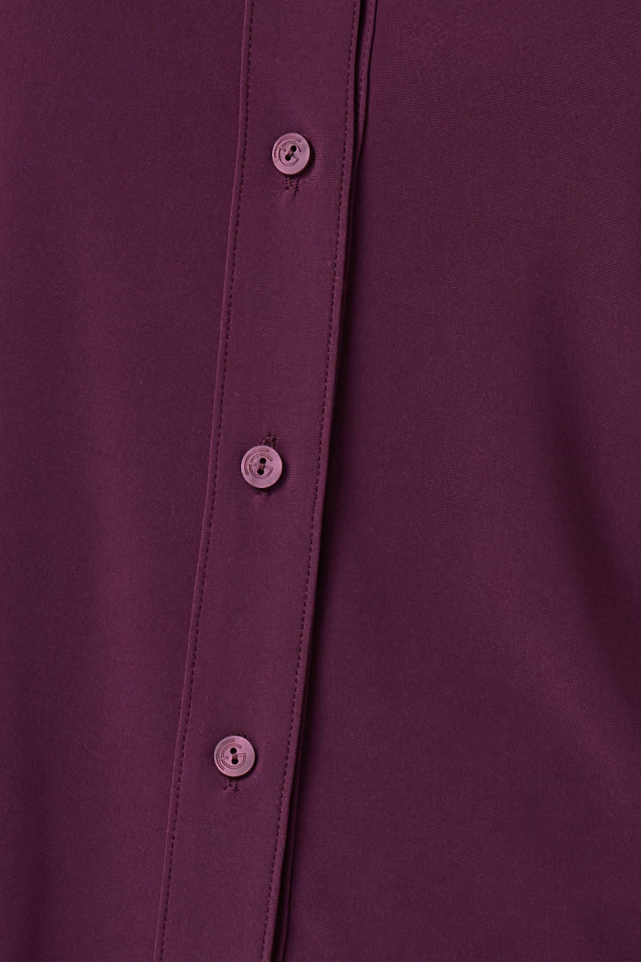 - Matte color‑matched buttons and chic shirttail hem add polished touches
