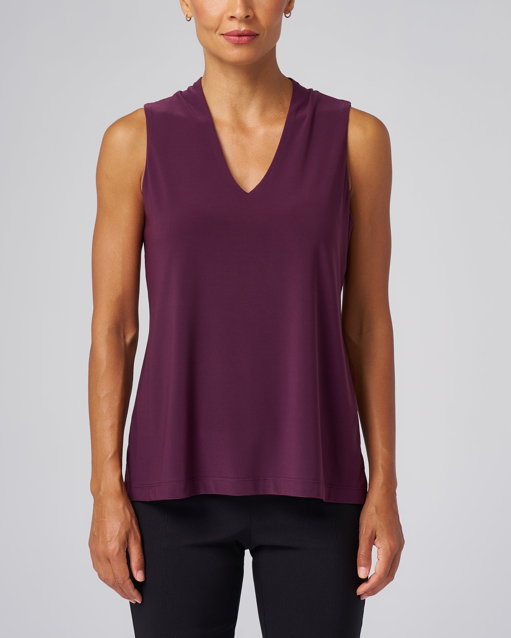 Luxe Stretch Sleeveless V-Neck in Aubergine