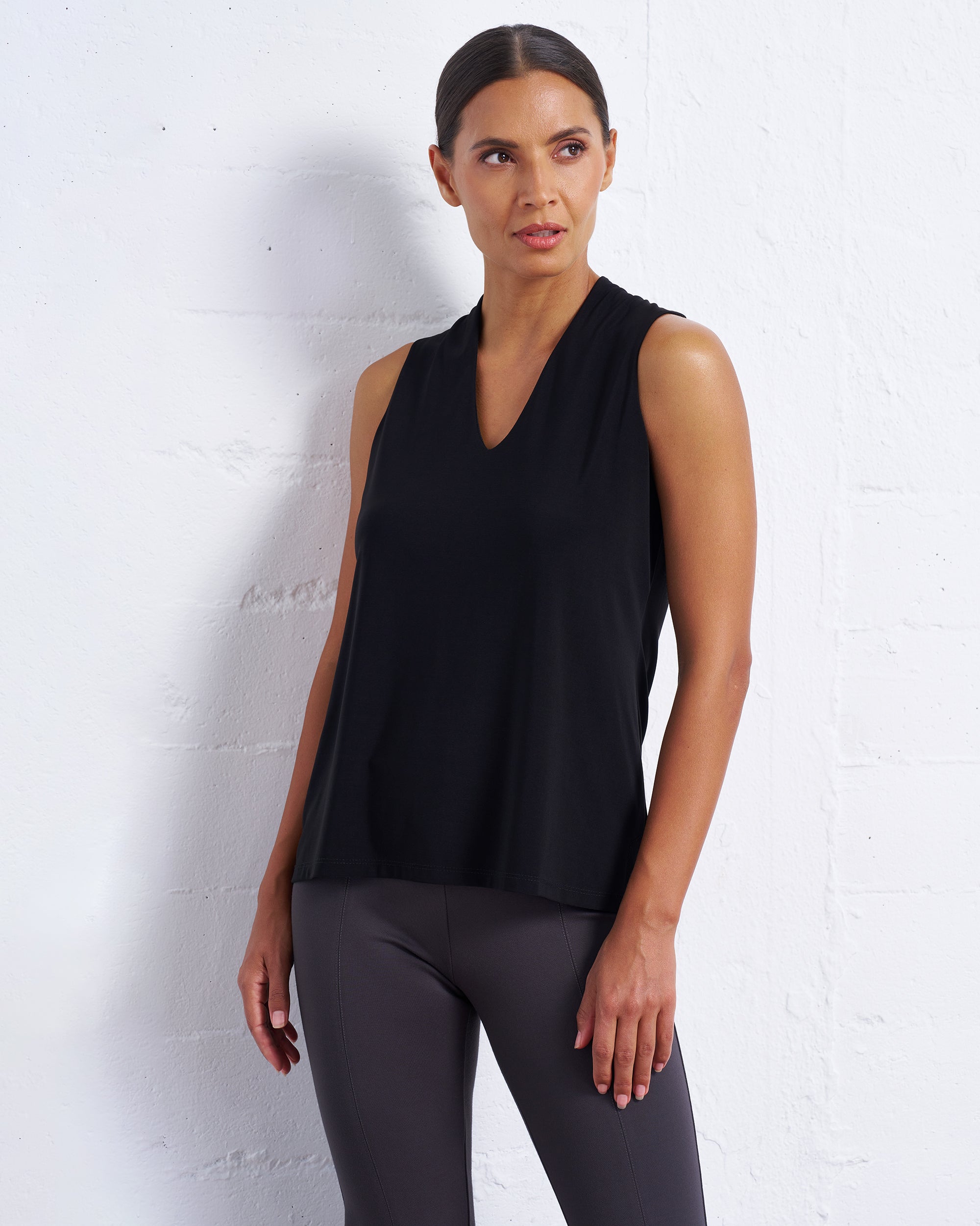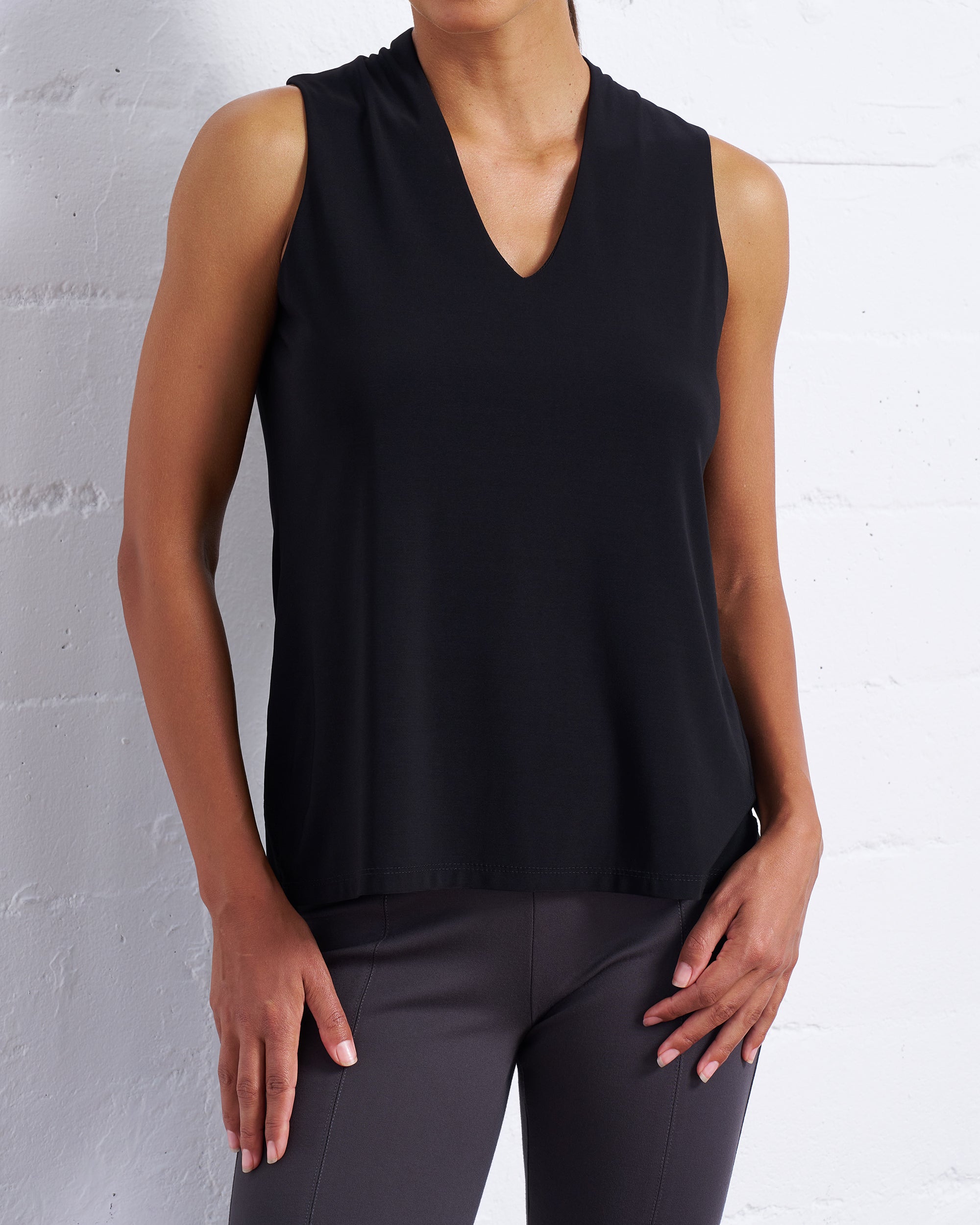 Luxe Stretch Sleeveless V-Neck in Black