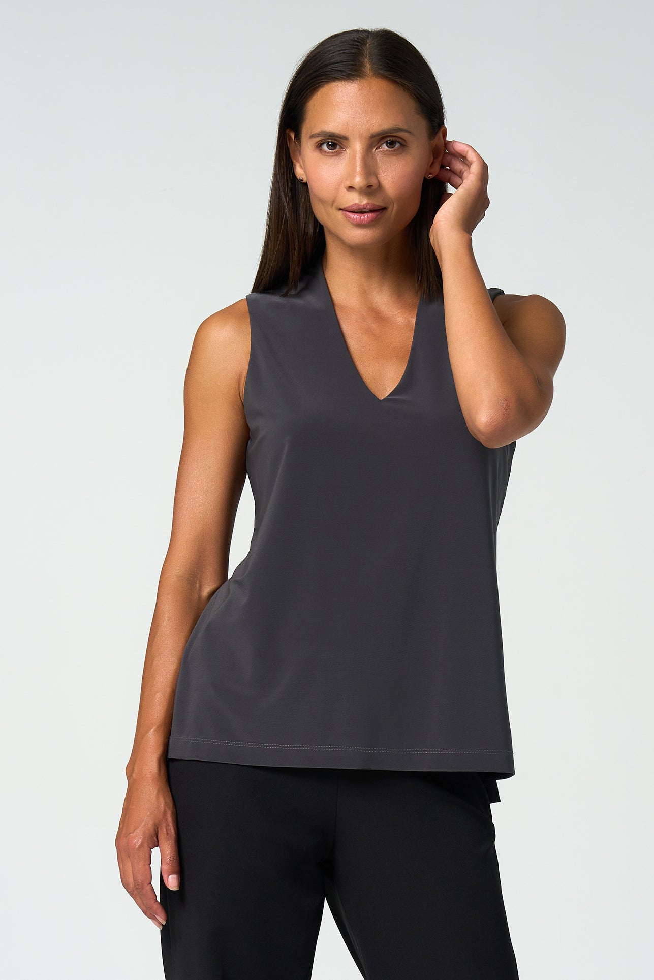 Luxe Stretch Sleeveless V-Neck in Graphite