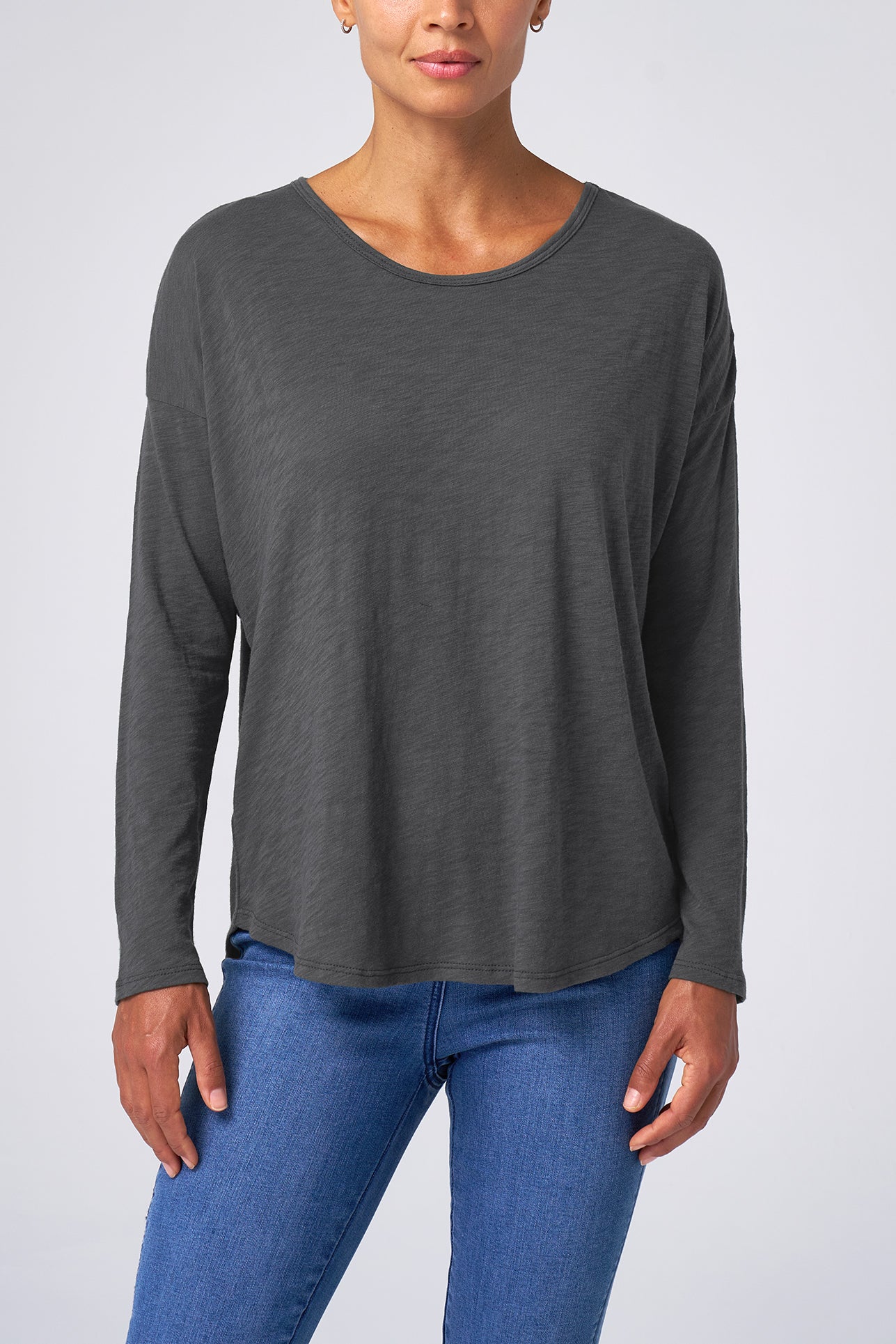 This ultra-soft slub jersey tee blends relaxed comfort with a flattering silhouette, making it an easy go-to for any day.