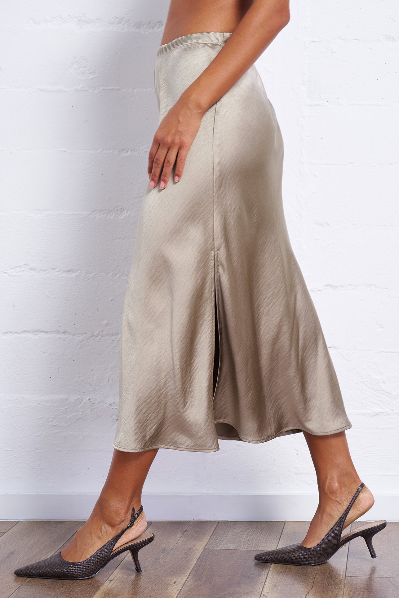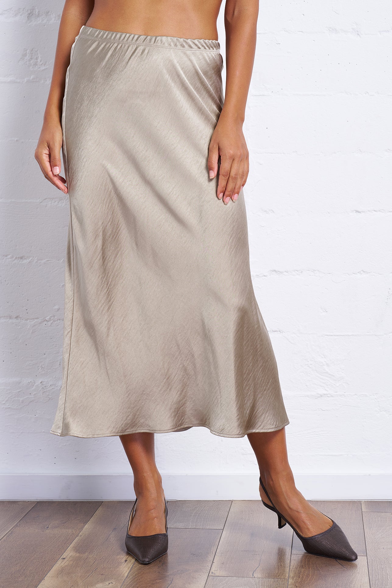 The Satin Bias Skirt blends timeless elegance with modern ease, delivering a graceful drape and flattering silhouette for any occasion.