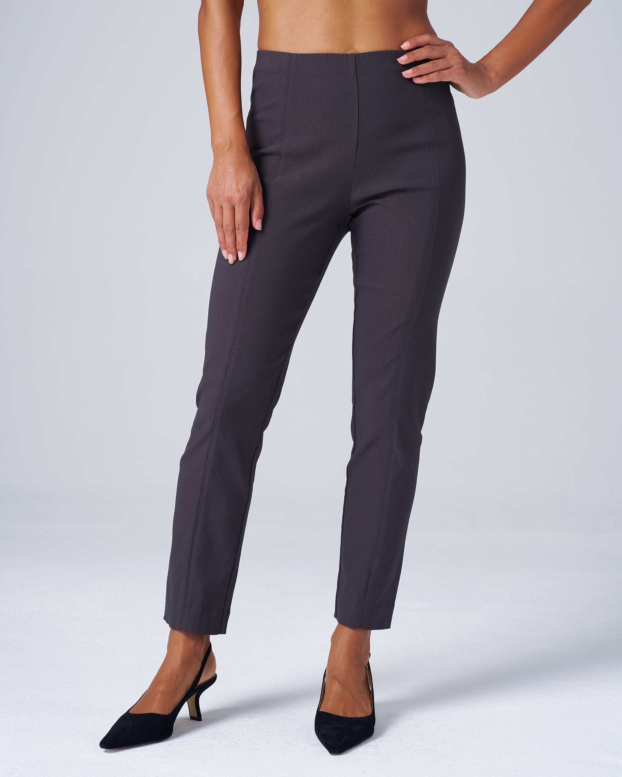 - High-waisted, pull-on design with no zippers or side seams for a smooth, flattering look