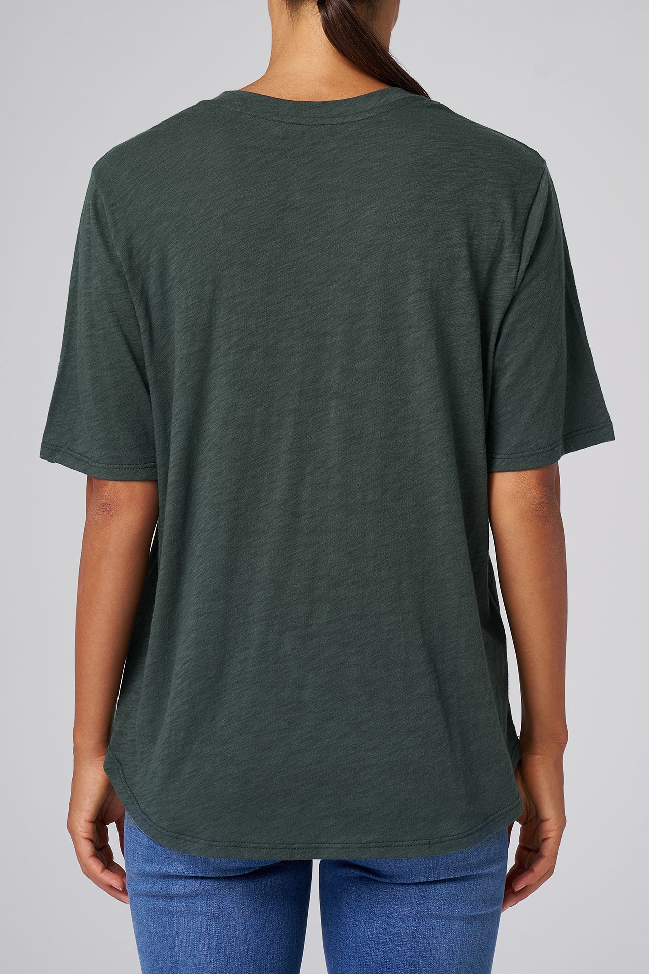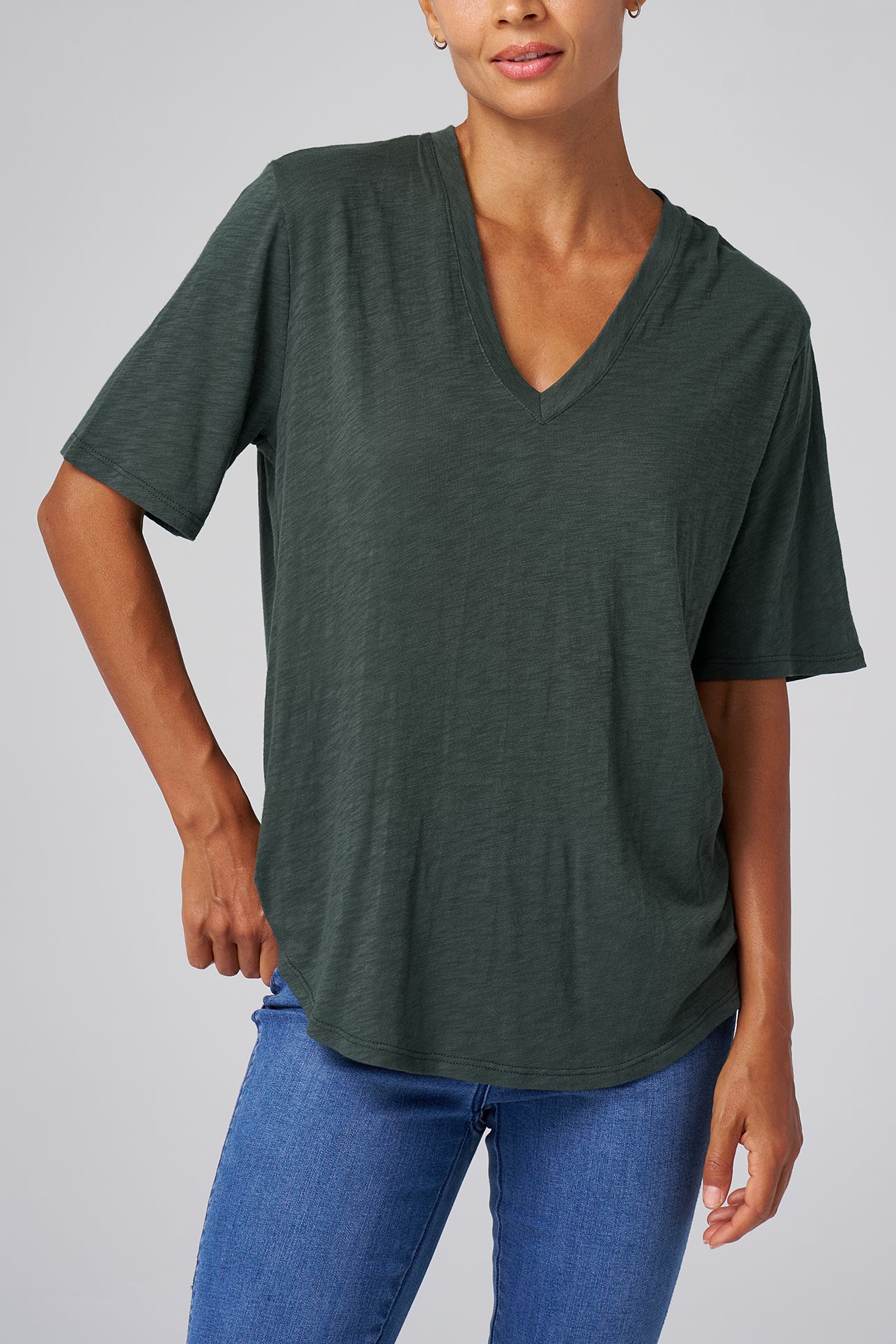 Slub Jersey V-Neck Elbow Sleeve Tee in Evergreen