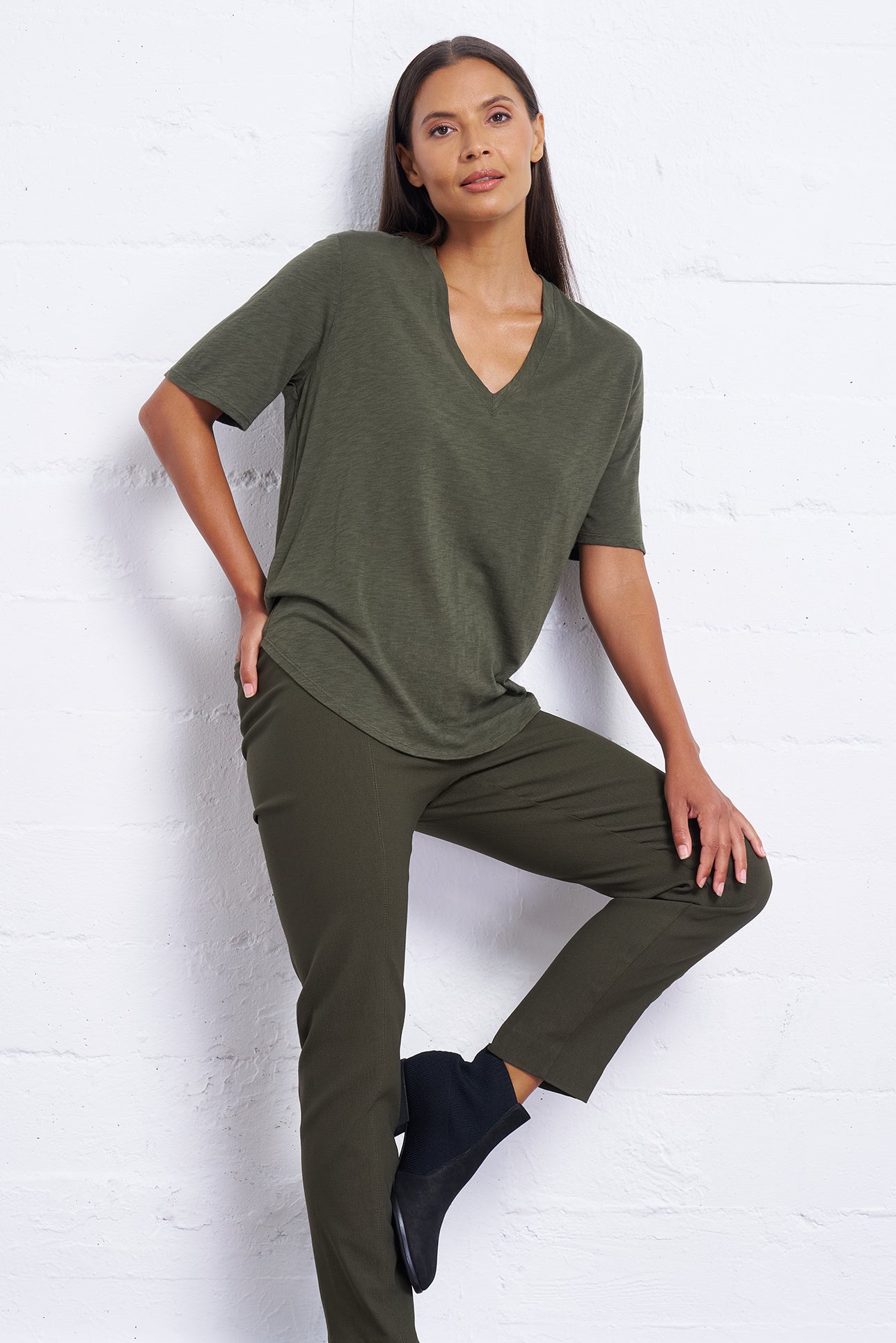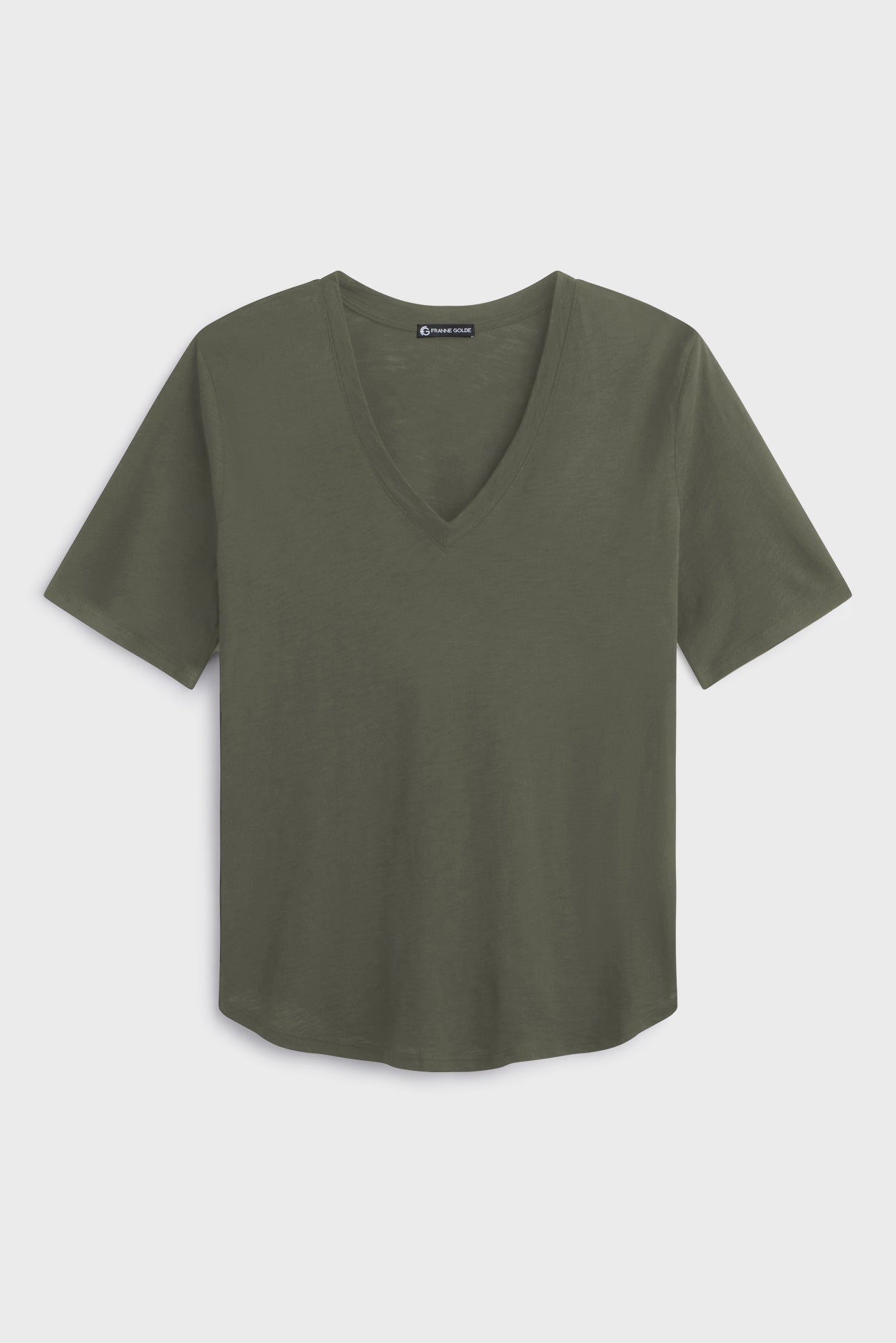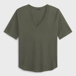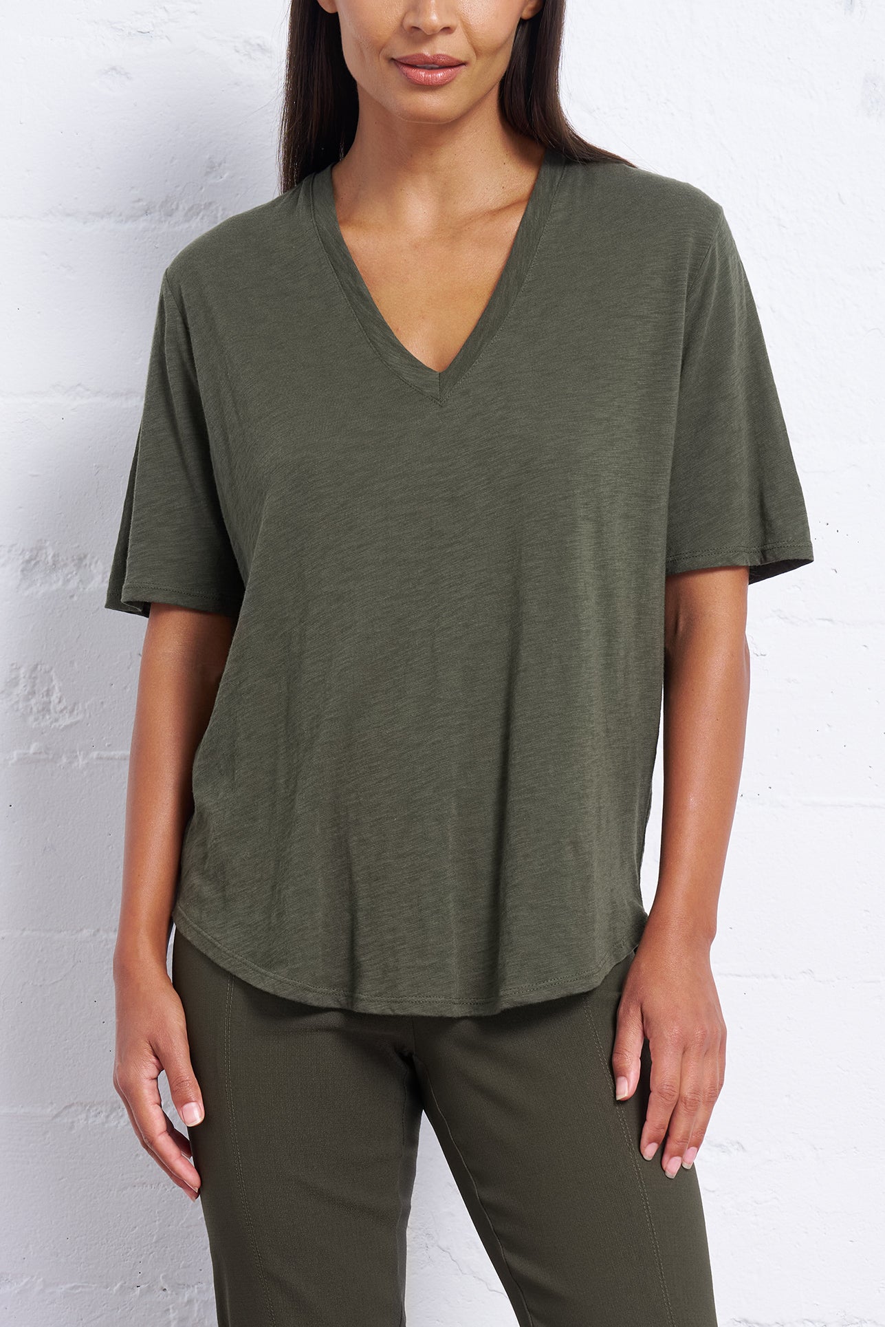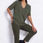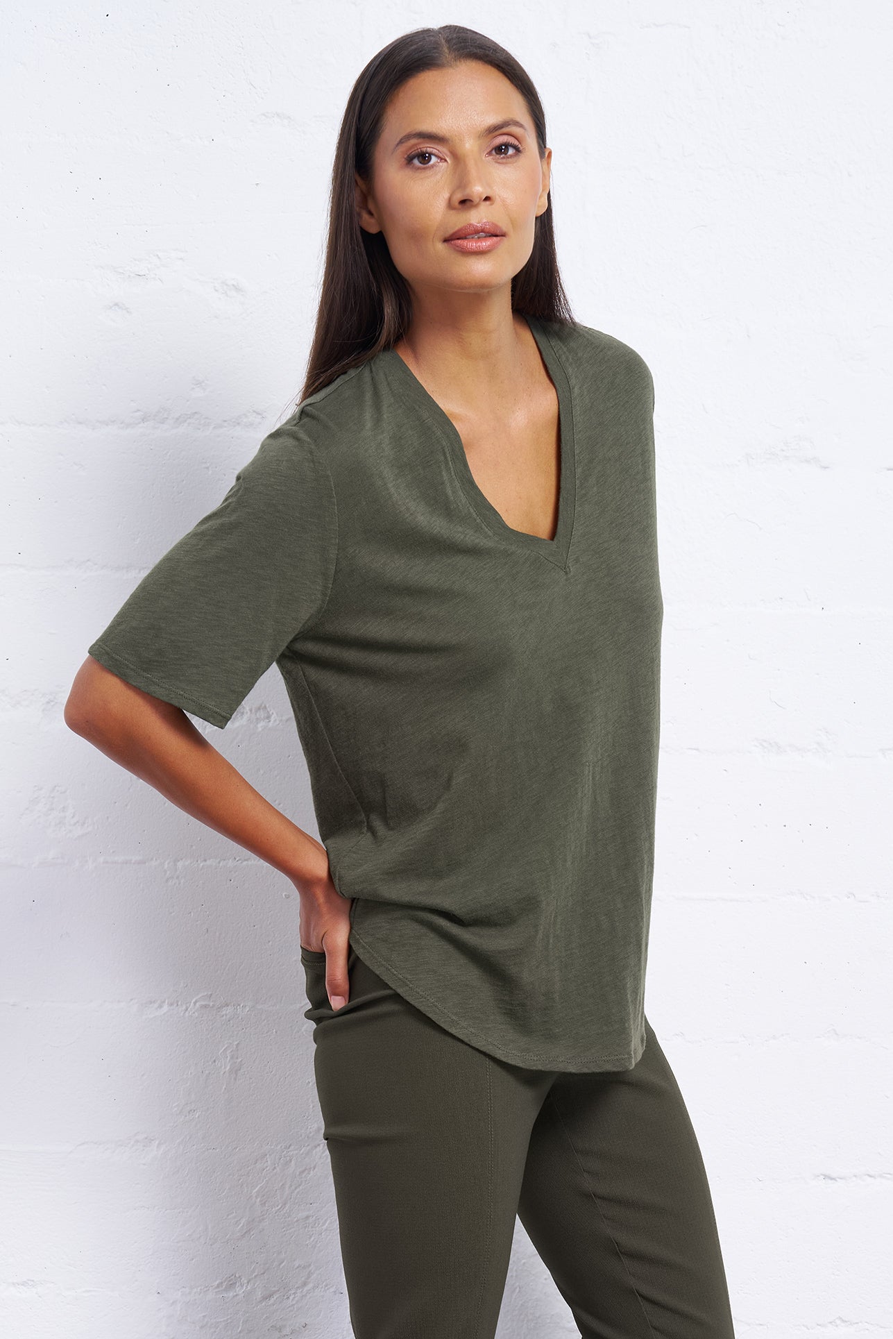 Slub Jersey V-Neck Elbow Sleeve Tee in Olive