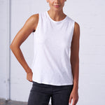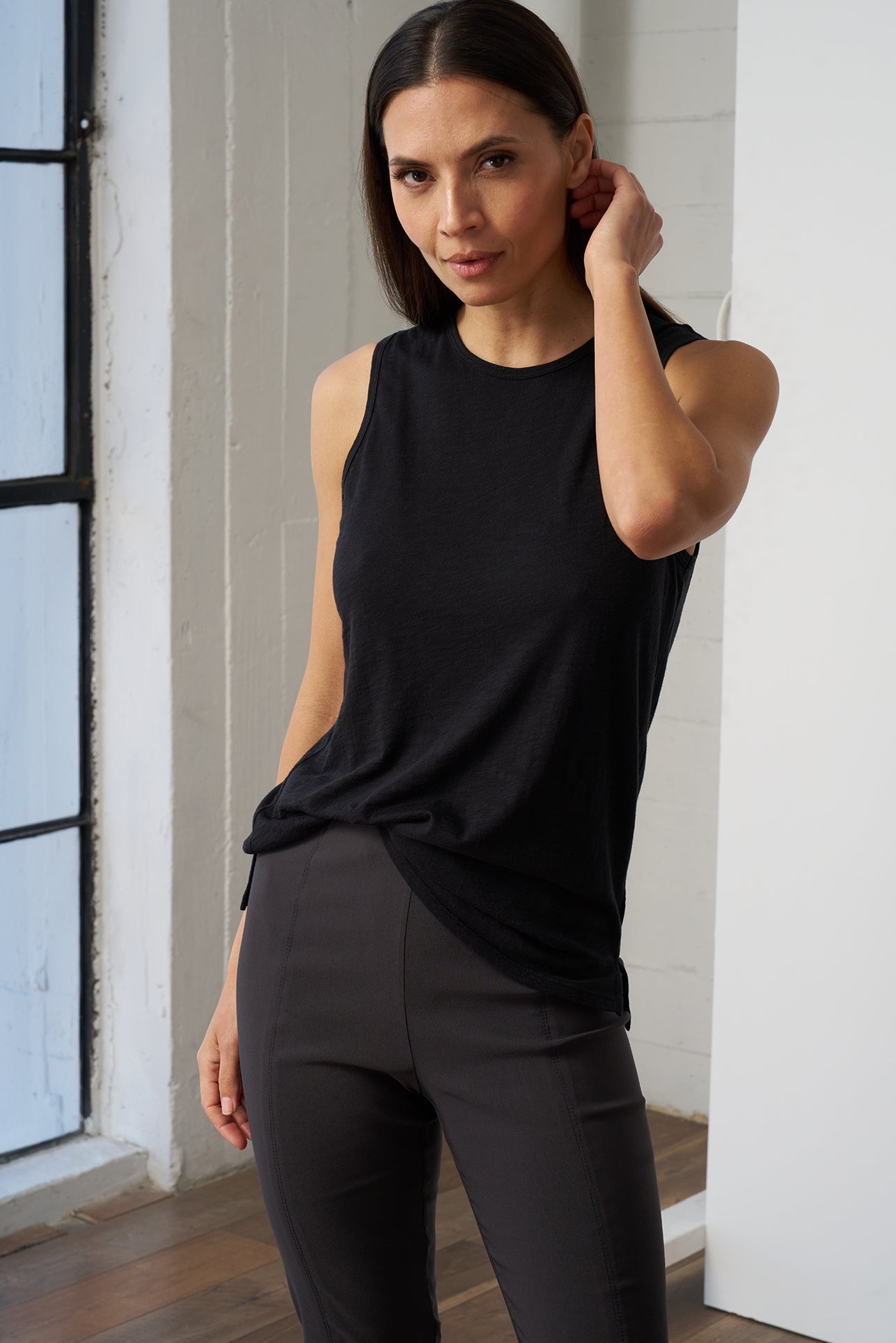 A sleeveless tee is your secret weapon for effortless style. With its just-right length, body-skimming fit, and luxuriously soft slub jersey fabric, this versatile top layers beautifully or shines on its own.