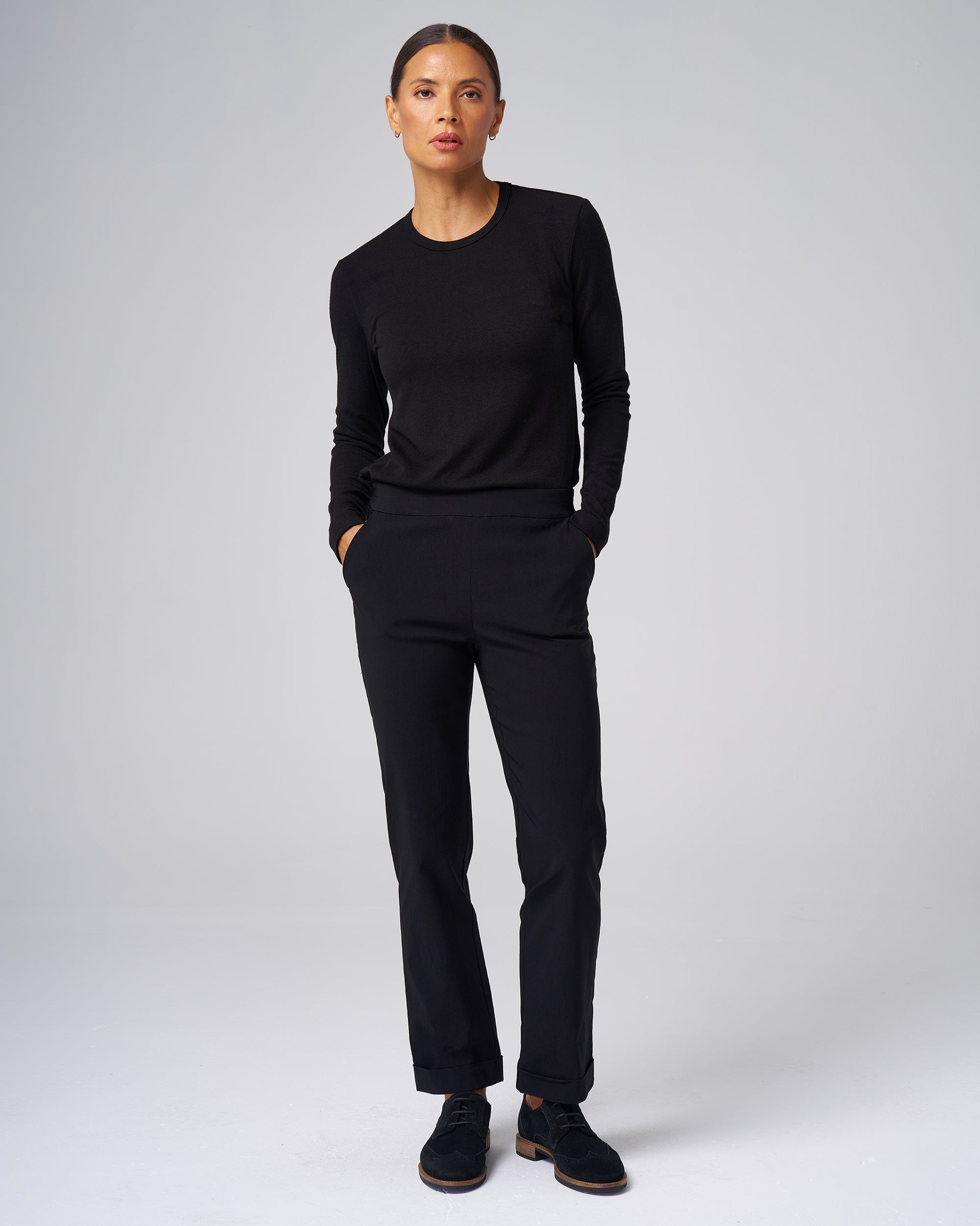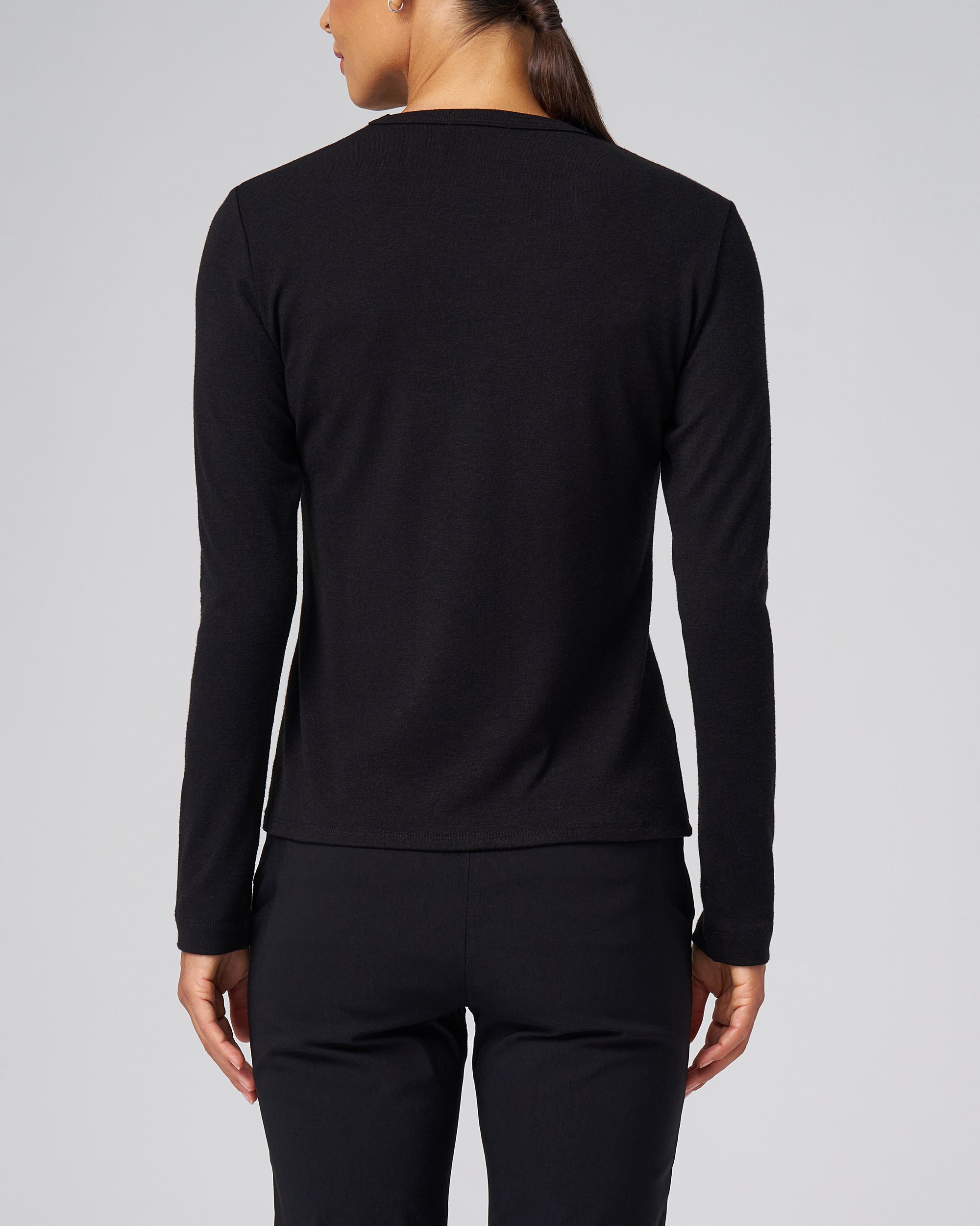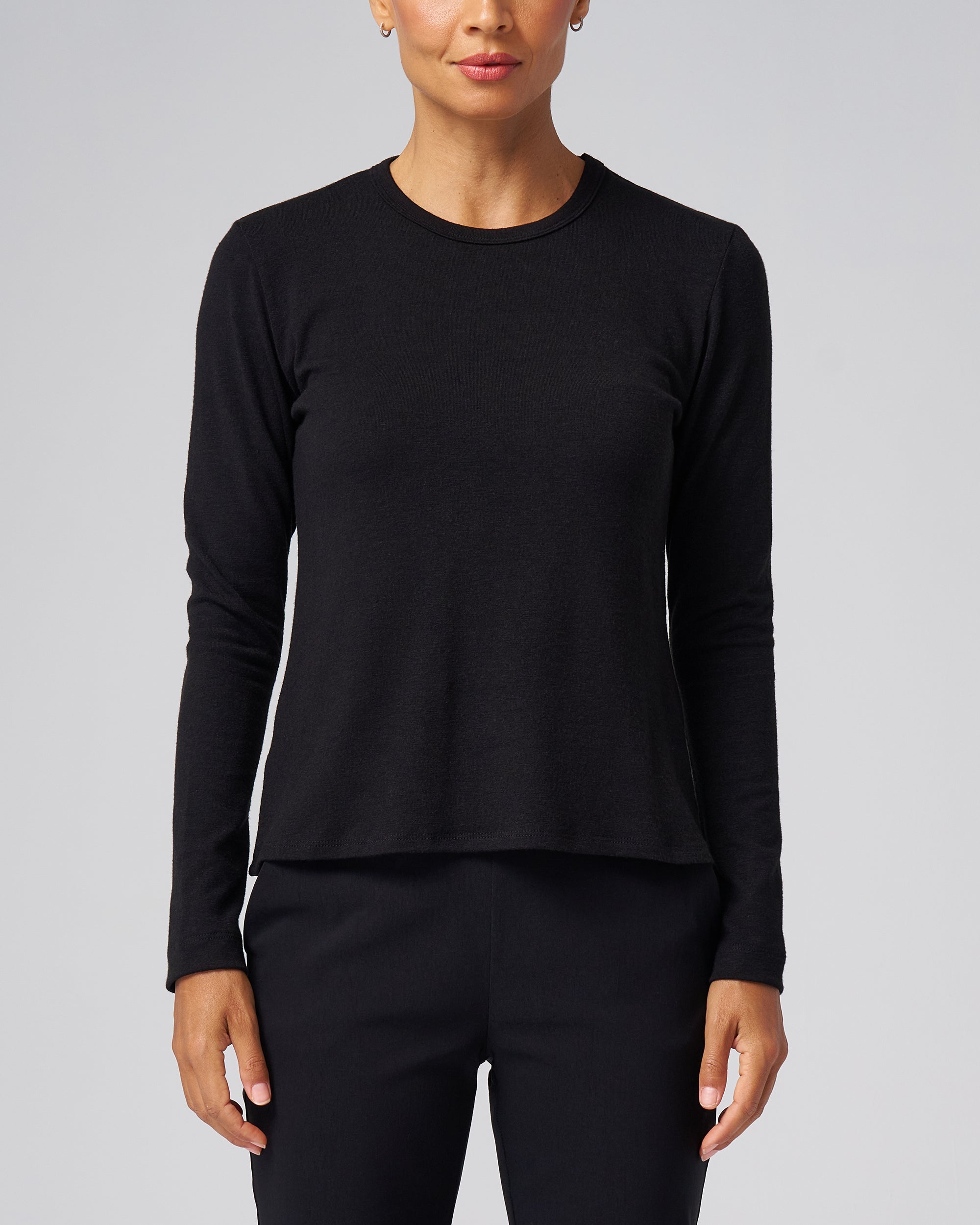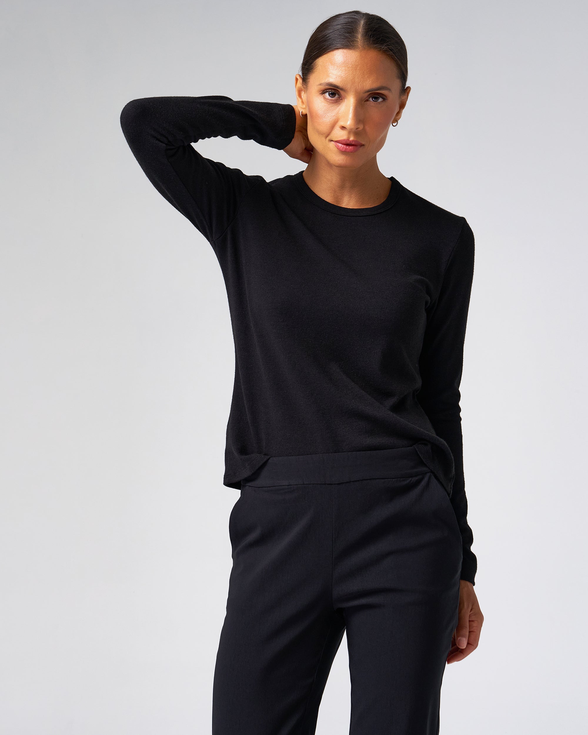 Made from a mid-weight structured knit, this long-sleeve tee holds its shape and gives a put-together look without sacrificing comfort. It layers smoothly under jackets or looks refined on its own.