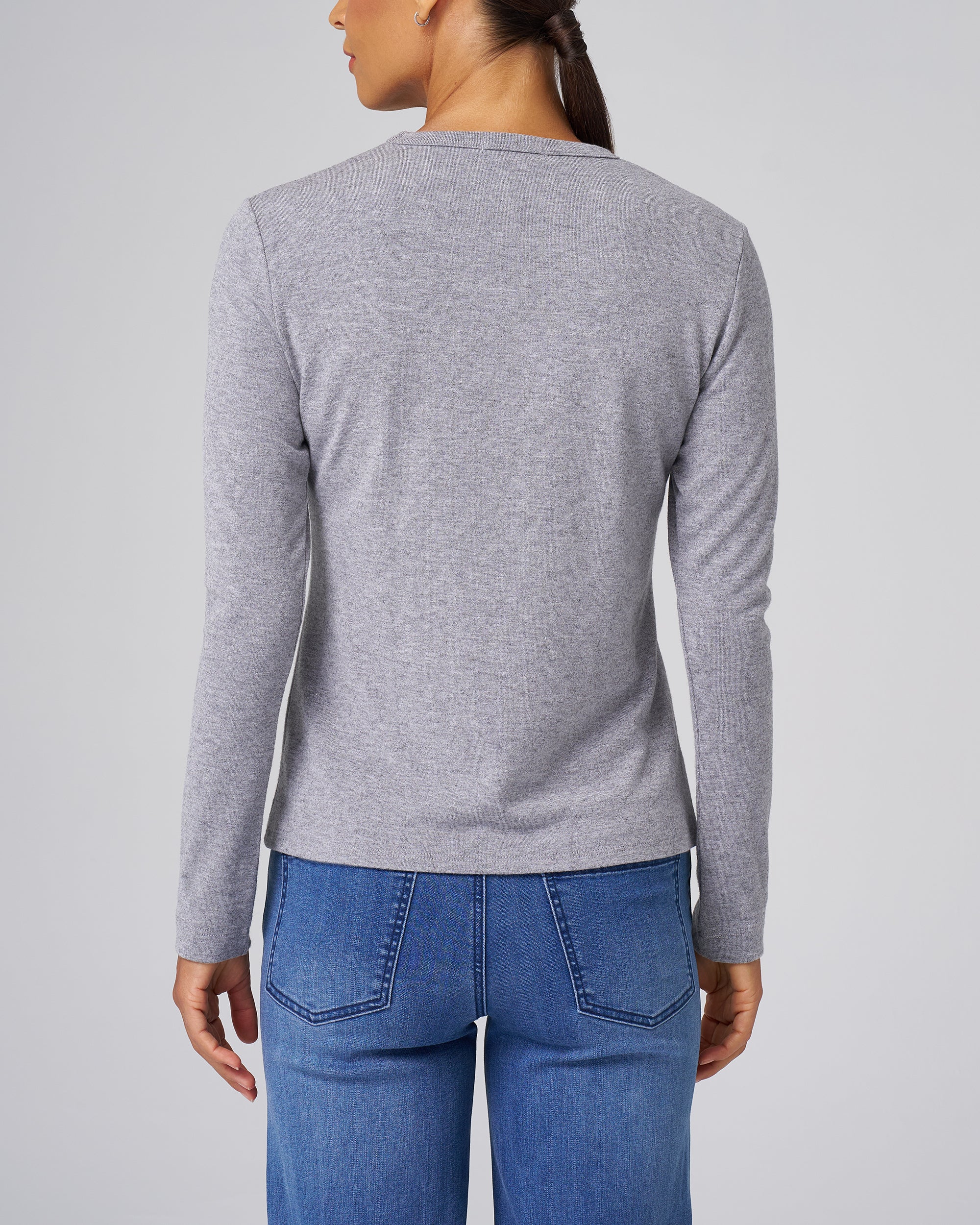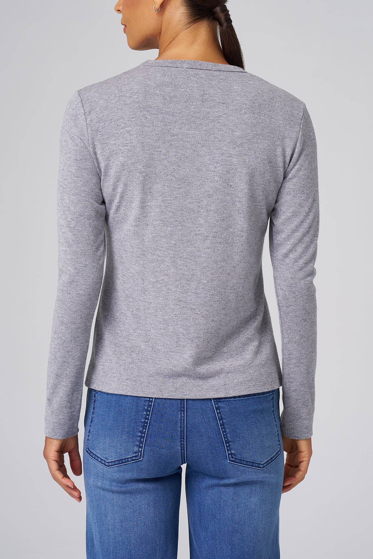 Structured Knit Long Sleeve Tee in Heather Grey