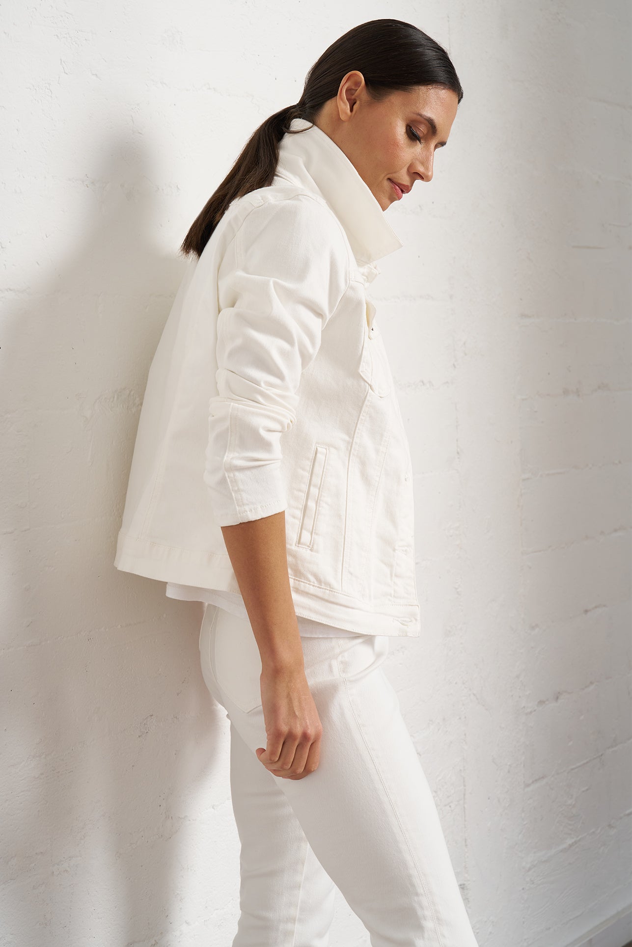 A closet essential reimagined—this stretch denim jacket looks like a classic, but feels like your favorite comfy layer thanks to its stretch fabric and flexible fit.