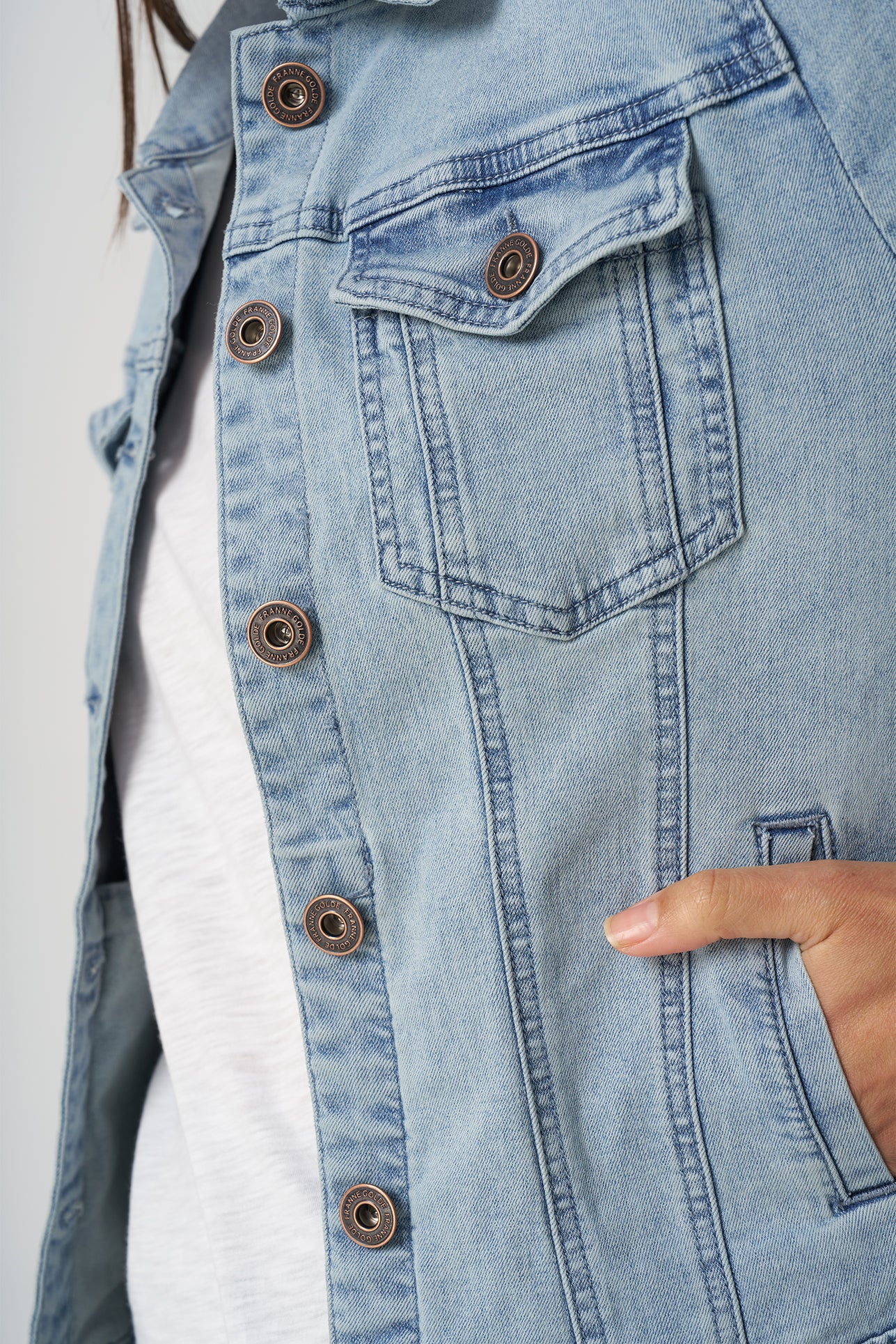 A closet essential reimagined—this stretch denim jacket looks like a classic, but feels like your favorite comfy layer thanks to its stretch fabric and flexible fit.